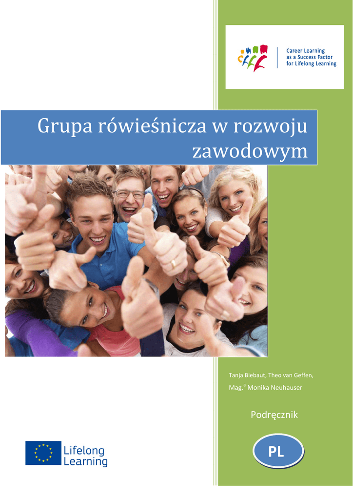 Grupa rówieśnicza w rozwoju zawodowym Tanja Biebaut, Theo van Geffen, Mag.a Monika Neuhauser Podręcznik PL Grupa rówieśnicza w rozwoju zawodowym Niniejsze wytyczne sporządzono na potrzeby projektu „Rozwój Innowacji”. Uczenie się poprzez karierę jako czynnik sukcesu w uczeniu się przez całe życie 2010‐3662/001‐001 www.careerlearning.eu © CLLL 2012 Partnerzy projektu: Austria Belgia Finlandia Niemcy Holandia Polska Szkocja Hiszpania SAB Schul‐ und Ausbildungsberatung, Graz Monika Neuhauser Dienst Beroepsopleiding, Brussels Tanja Biebaut Kokkolan Kauppaopisto, Kokkola Natascha Skog Volkshochschule Mainburg Matthias Bendl Landstede, Zwolle Theo van Geffen (Project Coordinator) Społeczna Akademia Nauk, Łódź Marta Kędzia, Grażyna Budzińska, Małgorzata Klimka Adam Smith College, Kirkcaldy Anne Gillen ITG Tajamar – Madrid Santiago García Gutiérrez Materiały składające się na niniejszy produkt końcowy zostały uzgodnione przez wszystkich partnerów projektu. 2 Grupa rówieśnicza w rozwoju zawodowym Projekt został zrealizowany przy wsparciu finansowym Komisji Europejskiej. Publikacja odzwierciedla jedynie stanowisko autorów i Komisja Europejska nie ponosi odpowiedzialności za umieszczoną w niej zawartość merytoryczną. 3 Grupa rówieśnicza w rozwoju zawodowym Spis treści Wstęp 5 2. Treść dla grup rówieśniczych 2.1 Kwestionariusz: dokonywanie wyborów 2.2 Kwestionariusz: tożsamość zawodowa 2.3 Kwestionariusz: poczucie własnej skuteczności 2.4. Tematy 7 7 9 10 12 3. Forma 13 Załączniki 24 1. Kontekst wspierania 1. Charakterystyka chłopców i dziewczynek w wieku 15 – 16 lat 2. Grupy rówieśnicze w kontekście badań naukowych 3. Literatura z zakresu szkoleń partnerskich 4 6 Grupa rówieśnicza w rozwoju zawodowym Wstęp Celem projektu „Uczenie się poprzez karierę jako czynnik sukcesu w uczeniu się przez całe życie” jest umożliwienie nauczycielom dalszego podnoszenia kwalifikacji poprzez kształcenie i szkolenie zawodowe (ang. VET). Prawem i obowiązkiem nauczycieli jest stała aktualizacja umiejętności i kompetencji pedagogicznych, by zapewniali młodzieży jak najlepsze doradztwo. W odniesieniu do doradztwa wymaga to uznania, że doradztwo, które obecnie oferowane jest uczniom, często nie jest wystarczająco profesjonalne, żeby pomóc im w łatwym i efektywnym wejściu na rynek pracy. Oznacza to, że nauczyciele w XXI wieku powinni zwrócić uwagę na potrzebę zachęcania uczniów do rozwijania umiejętności uczenia się i elastyczności w oparciu o podstawową i uporządkowaną świadomość konieczności uczenia się przez całe życie. Wspieranie grup rówieśniczych w uczeniu się poprzez karierę Nie posiadamy informacji na temat istnienia jakiejkolwiek grupy rówieśniczej, wspieranej przez szkołę w uczeniu się poprzez karierę. Najbardziej zaskakującym faktem jest to, że uczniowie biorący udział w uczniowskich panelach dyskusyjnych projektu sami spontanicznie prosili o utworzenie takich grup. W trakcie uczniowskich paneli dyskusyjnych, uczniowie stwierdzili, że podobają im się dyskusje panelowe, a szczególnie rozmowy z rówieśnikami oraz że wszystkie zadane przez nas pytania były istotne dla wszystkich uczestników. Jednocześnie uczniowie przyznali, że nie byliby w stanie samodzielnie zorganizować i prowadzić paneli dyskusyjnych. Dlatego postanowiliśmy stworzyć metodę pracy dla takich grup rówieśniczych razem z uczniami i nauczycielami/doradcami. Rezultaty poznacie Państwo czytając niniejsze opracowanie. Rozdział 1 poświęcony jest opcjom wsparcia grup rówieśniczych, w rozdziale 2 znajdują się treści do dyskusji w grupie rówieśniczej w formie kwestionariuszy i propozycji tematów, natomiast w rozdziale 3 przedstawiamy pomysły związane z wszelkiego rodzaju aspektami praktycznymi i organizacyjnymi. W załącznikach zamieściliśmy spis związanej z tematem literatury. Tanja Biebaut Theo van Geffen Monika Neuhauser 5 Grupa rówieśnicza w rozwoju zawodowym 1. Kontekst wspierania Jak wspomnieliśmy we wstępie, pomysł wspierania grup rówieśniczych powstał w trakcie uczniowskich sesji panelowych w Holandii. Uczniowie uznali, że rozmowy z rówieśnikami na temat kariery były pożyteczne i dobrze się w ich trakcie bawili. Jednocześnie stwierdzili, że szkoły powinny wspierać grupy rówieśnicze, ponieważ oni sami nie czują się (w pełni) zdolni i pewni siebie do przeprowadzenia takiej inicjatywy samodzielnie. Szkoły mają do wyboru trzy konteksty wsparcia grup rówieśniczych w uczeniu się przez całe życie: 1. jako część programu nauczania, 2. organizowany przez nauczyciela/doradcę/eksperta, 3. oparty na pracy uczniów; np. indywidualne zadania dla uczniów. Różnice pomiędzy tymi trzema kontekstami nie są ewidentne. W zależności od sytuacji, dany przypadek może stanowić połączenie wszystkich trzech kontekstów. Grupa partnerów projektu „Uczenie się poprzez karierę” proponuje, by szkoły przyjęły pomysł utworzenia grup rówieśniczych zajmujących się uczeniem się poprzez karierę i umieściły go w programie nauczania; niekoniecznie jako jeden z przedmiotów nauczania, ale przynajmniej jako jeden z tematów do omówienia w ramach zajęć. Po drugie, radzimy, by szkoły przejęły inicjatywę w organizacji grup rówieśniczych. Podczas dyskusji z panelami uczniowskimi odkryliśmy, że uczniowie nie są wystarczająco pewni siebie, żeby samodzielnie zainicjować taki pomysł. W zależności od poziomu poczucia własnej skuteczności uczniowie mogą nawet samodzielnie zająć się organizacją grup rówieśniczych. Dyskusje z panelami uczniowskimi w Austrii, Belgii i Holandii zaowocowały wieloma możliwościami wyboru sposobu organizacji grupy rówieśniczej. Na tym właśnie temacie skupimy się w pierwszych dwóch rozdziałach poświęconych treści i formie. 6 Grupa rówieśnicza w rozwoju zawodowym 2. Treść dla grup rówieśniczych Zal