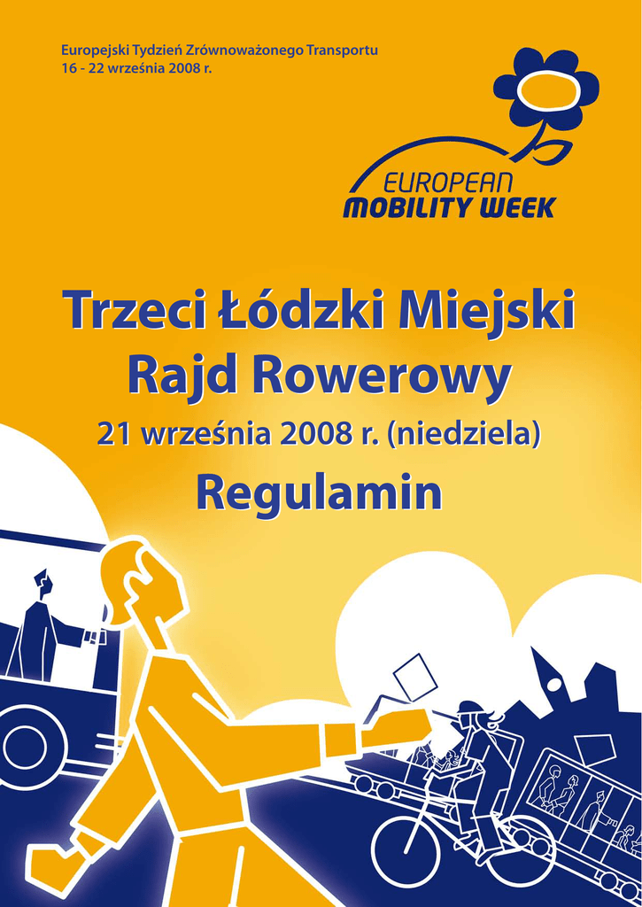 Regulamin Trzeciego Łódzkiego Miejskiego Rajdu Rowerowego Europejski Tydzień Zrównoważonego Transportu 16 - 22 września 2008 r. Trzeci Łódzki Miejski Rajd Rowerowy 21 września 2008 r. (niedziela) Regulamin 1 2 Regulamin Trzeciego Łódzkiego Miejskiego Rajdu Rowerowego Program Trzeciego Łódzkiego Miejskiego Rajdu Rowerowego W ramach obchodów Europejskiego Tygodnia Zrównoważonego Transportu zostanie przeprowadzona w dniu 21 września 2008 roku (niedziela), na terenie Łodzi, impreza kolarska o charakterze rekreacyjnym, w której będzie mógł wziąć udział każdy uprawniony do poruszania się rowerem po ulicach. Głównym celem imprezy ma być pokazanie, że w centrach dużych miast rower może być równoprawnym środkiem transportu, oraz że rowerzyści nie powinni być dyskryminowana przez innych użytkowników dróg oraz przez służby odpowiedzialne na organizację ruchu w mieście. Inny, ważny cel, to możliwość lepszego poznania topografii miasta, szczególnie pod kątem możliwości przemieszczania się po nim rowerem. Przy okazji obecne będą także elementy zabawy i współzawodnictwa. Regulamin rajdu Rajd, pomimo że zawiera element sportowej rywalizacji, nie ma charakteru wyścigu. Zadaniem uczestników będzie odnalezienie jak największej liczby miejsc opisanych w załączniku do niniejszego regulaminu oraz zebranie możliwie dużej liczby punktów za wykonane zadania. Zwycięzcy zostaną wyróżnieni, a dla wszystkich uczestników nagrodą będzie satysfakcja z udziału i z pokonanego dystansu. Cel imprezy → Promocja roweru, jako pełnoprawnego środka transportu w mieście. Nabywanie doświadczenia w korzystaniu z infrastruktury rowerowej oraz w poruszaniu się rowerem w ruchu miejskim → Pokazanie, że rowery i samochody mogą i powinny współistnieć na ulicach Łodzi → Propagowanie wśród mieszkańców zachowań pro-zdrowotnych i pro-ekologicznych → Poznawanie łódzkich terenów rekreacyjnych oraz najdogodniejszych dróg dojazdu do nich → Zaakcentowanie obchodów Europejskiego Tygodnia Zrównoważonego Transportu Czas i miejsce: → → → → → → Łódź, 21 września 2008 roku (niedziela) Start i meta – Aleja Schillera Początek zapisów – godzina 09:30 Start pierwszych uczestników – godzina 10:00 Start ostatnich uczestników – godzina 14:00 Zakończenie imprezy – godzina 17:15. Rajd można rozpocząć między godziną 10 a 14, jednak osobom zamierzającym zaliczyć oba przewidziane w regulaminie poziomy zalecamy jak najwcześniejsze rozpoczęcie udziału. Oficjalne zakończenie imprezy, z podsumowaniem i wręczeniem wyróżnień, odbędzie się 22 września ok. godz. 18 w pasażu Schillera, przy okazji głównych uroczystości związanych z kończącym się Europejskim Tygodniem Zrównoważonego Transportu. Warunki uczestnictwa: → Uczestnikiem może być każda osoba posiadająca sprawny technicznie rower oraz uprawniona do poruszania się nim po drogach publicznych. → Każdy uczestnik bierze udział w imprezie na własną odpowiedzialność i ponosi wszystkie konsekwencje spowodowanych przez siebie zdarzeń. → Osoba nieletnia nie posiadająca karty rowerowej może brać udział w imprezie tylko pod stałą opieką osoby dorosłej, która ponosi pełną odpowiedzialność za podopiecznego. → Uczestnicy przed startem zapisują się na listę w punkcie startowym. → Udział w imprezie jest bezpłatny. → W rajdzie mogą wziąć udział osoby startujące indywidualnie oraz zespoły reprezentujące szkoły ponadgimnazjalne. Zespół może składać się z co najmniej 4 i nie więcej niż 10 osób. Jedna osoba w zespole wyznaczona jest do pełnienia funkcji lidera. Regulamin Trzeciego Łódzkiego Miejskiego Rajdu Rowerowego 3 Sposób przeprowadzenia imprezy → Impreza odbywa się na terenie miasta Łodzi. Ma ona charakter rowerowego rajdu na orientację. Zadaniem uczestników jest odnalezienie jak największej ilości punktów kontrolnych opisanych na wykazie, dostarczonym przez organizatorów bezpośrednio przed startem. → Zgodnie z hasłem przewodnim, punkty kontrolne zlokalizowane są przeważnie na terenie miejskich obszarów rekreacyjnych – głównie parków. → Potwierdzeniem odnalezienia punktu będzie udzielenie prawidłowej odpowiedzi na pytanie związane z danym punktem. Najczęściej będzie to jakaś charakterystyczna cecha, mierzalna, policzalna lub dająca się w jednoznaczny sposób opisać. Nie będzie wymagana znajomość żadnych danych nie dających się bezpośrednio zaobserwować (np. danych historycznych, botanicznych itp.). → Użytkownicy samodzielnie wybierają optymalną dla siebie trasę. Organizator nie zapewnia map, nie sugeruje trasy przejazdu ani kolejności zaliczania punktów. → Czas wykonania zadania nie jest uwzględniany przy klasyfikowaniu uczestników. O miejscach w rywalizacji decyduje wyłącznie ilość zebranych punktów. Uczestnicy muszą zameldować się na mecie do godziny 17:00. Za każdą minutę spóźnienia, ale nie większego niż 15 minut, będzie odejmowany 1 punkt. Uczestnicy, którzy dotrą do mety po godzinie 17:15 nie zostaną sklasyfikowani. → Za wykonanie każdego zadania można zdobyć od 1 do 3 punktów. Najwyżej punktowane będą zadania zlokalizowane w najbardziej odległych od centrum miasta miejscach. → Aby do rywalizacji mogli włączyć się także mniej zaawansowani rowerzyści, przewidziano rozegranie imprezy na dwóch poziomach. Poziom pierwszy (łatwiejszy) obejmuje zaliczanie miejsc zlokalizowanych bliżej centrum miasta, na obszarze ograniczonym koleją obwodową. Poziom drugi obejmuje obszary położone na zewnątrz kolei obwodowej. Uczestnicy, którzy zadeklarują udział tylko na poziomie pierwszym, zostaną sklasyfikowani w osobnej kategorii. Pozostali będą sklasyfikowani na podstawie sumy punktów zebranych z obu poziomów. Nie przewiduje się osobnej klasyfikacji tylko dla poziomu drugiego. → Uczestnicy indywidualni i z