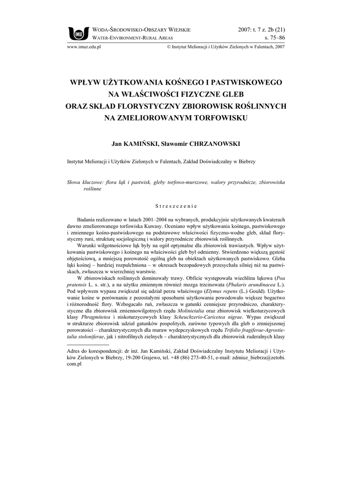 wpływ użytkowania kośnego i pastwiskowego na właściwości