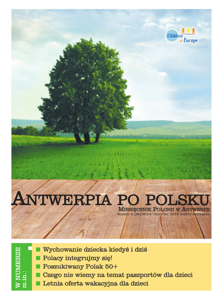 ANTWERPIA PO POLSKU MIESIĘCZNIK POLONII W W NUMERZE m.in.: Numer 6 (38)/2014, czerwiec 2014 n n n n n ANTWERPII GAZETA BEZPŁATNA Wychowanie dziecka kiedyś i dziś Polacy integrujmy się! Poszukiwany Polak 50+ Czego nie wiemy na temat paszportów dla dzieci Letnia oferta wakacyjna dla dzieci 2 Antwerpia po polsku czerwiec 2014 Od Redakcji Z okazji Dnia Dziecka, przygotowaliśmy niespodziankę nie tylko dla dzieci, ale również dla rodziców, którzy z zaciekawieniem (mamy nadzieję) przeczytają artykuł o zaletach i wadach współczesnego rodzicielstwa. A dla dzieci – autorska, nigdy dotąd niepublikowana bajka, oczywiście z morałem. W kąciku historycznym wspomnimy krótko o ważnych dla Polski wyborach z 1989 i o tym, jak do nich doszło. Wielu z nas myśli o posiadaniu belgijskiego paszportu. Zachęcimy więc do pierwszego kroku na tej drodze, jakim jest kurs integracyjny. Artykuł „Poszukiwany Polak 50+” naświetla nowe perspektywy w Europie dla osób w tym wieku. Jeśli ktoś ma trudności z powiedzeniem komuś „Nie”, w tym numerze znajdzie słowa, które mogą odmienić jego życie. Polecamy przygotowany przez miasto Antwerpia wykaz wakacyjnych zajęć dla wszystkich polskich dzieci mających problemy z językiem niderlandzkim. Naprawdę warto z takiej oferty skorzystać. Ogólnie, w „Antwerpii po polsku”, jak zwykle garść informacji na różne tematy. Niektóre z nich są ważne, inne bardziej istotne, inne bardziej ciekawe. Jednak wybór, oczywiście należy do Czytelnika. Zachęcamy do lektury. Redakcja Spis treści: 4 .... Wychowanie dziecka kiedyś i dziś 31 .... Z życia polskiej szkoły w Antwerpii 6 .... Bajkowisko 32 .... Kabareton na wyciągnięcie ręki – Brukselska Noc Kabaretowa 8 .... Poznajemy i odkrywamy Antwerpię 10 .... Polacy, integrujmy się! 34 .... Witamina czarodziejka 12 .... Poszukiwany Polak 50+ 37 .... Autobusem do Polski 14 .... Belgia po wyborach. Nowe rozdanie 16 .... Czego nie wiemy na temat paszportów dla dzieci 38 .... Brunetki kontra blondynki 41 .... Ciekawostki 42 .... Czy umiesz powiedzieć NIE 19 .... Nabycie belgijskiego obywatelstwa według nowych przepisów – część I 45 .... Pisać każdy może 21 .... Przegląd prasy belgijskiej 49 .... Słowo o byle czym 23 .... Przegląd prasy polskiej 53 .... Ogłoszenia drobne 30 .... Kącik historyczny 55 .... Ważne numery telefonów w Antwerpii 46 .... Kącik absurdu Projekt jest współfinansowany ze środków finansowych otrzymanych od Ministerstwa Spraw Zagranicznych w ramach konkursu na realizację zadania „Współpraca z Polonią i Polakami za granicą”, przy współpracy z Fundacją Semper Polonia w Warszawie. SKŁAD REDAKCJI: Agata Kocińska, Magdalena Wawryszuk, Anna Janicka Kontakt: [email protected], tel.: 0489/823803 WYDAWCA: Fundacja „Children of Europe”, www.antwerpiapopolsku.be Redakcja nie ponosi odpowiedzialności za treść reklam i ogłoszeń Polub nas na Facebooku, szukaj: Antwerpia po polsku 4 Antwerpia po polsku czerwiec 2014 Wychowanie dziecka kiedyś i dziś „My w twoim wieku nie mieliśmy tak dobrze. Teraz wychowanie dziecka jest o wiele łatwiejsze niż kiedyś. Kaszka z mleczkiem”. Dawniej Rodzice wychowywali swoje pociechy bez gadżetów i technicznych nowinek, bez komputera, tabletu, telefonu komórkowego i internetu. Mieli Czy rzeczywiście wychowywanie za to do dyspozycji jedną książkę „Madziecka w XXI wieku jest prostsze niż łe dziecko”, w której wszystko było kiedyś? Z mieszanymi uczuciami wy- podane w formie krótkich, zwięzłych słuchuję opowieści bliższej i dalszej i niepodlegających dyskusji zaleceń. rodziny o tetrowych pieluchach, pral- Rodzice obywali się bez elektroniczce Frani i bananowej Humanie. nych niań, leżaczków kąpielowych, Notuję w pamięci informacje, jak monitorów oddechu i innych przedkiedyś żyło się bez odżywek, pamper- miotów ułatwiających życie. Wtedy sów, wielofunkcyjnych wózków dla tego po prostu nie było. Nie było probdzieci i ortodonty. Słucham opowia- lemu z wyborem lalki czy klocków dla dań mamy o ponurej peerelowskiej dzieci, bo wtedy takiego wyboru też szkole, pustych sklepach, kilometro- nie było. Nasze mamy i babcie nie wych kolejkach i braku życiowych miały telefonów komórkowych, dotyperspektyw. kowych termometrów i całej masy Zdobyłam niemal całą dostępną wie- szczepionek chroniących dzieci. Nie dzę na temat wychowania dzieci. Ze mogły sięgnąć do internetu po poraspecjalistycznych książek, poradni- dę, podgrzać obiadu w mikrofali. Ówków i internetu. I co? Okazuje się, że czesna mama sprzątała, gotowała, w sytuacjach stresowych fakt, że prasowała, a dziecko gaworząc leżało wiem tak dużo, wcale mojego życia w łóżeczku. nie czyni łatwiejszym. Kiedyś wychowywanie dziecka należało do całej rodziny, ale największymi autorytetami byli dziadkowie. To oni dawali młodym rodzicom rady i wskazówki, których nie można było kwestionować. To oni (a zwłaszcza babcia) decydowali o tym, co dziecko powinno jeść, jak należy je pielęgnować, a kiedy malec „wrzeszczał” najczęściej słyszało się opinie, że należy odłożyć je do łóżeczka. Ma się wypłakać i tyle. I nie wolno przyzwyczajać go do noszenia, bo Źródło: http://www.dziennikzachodni.pl wyrośnie z niego tyran. Dzieci nie zabierały głosu bez pozwolenia dorosłych. Miały siedzieć prosto przy stole i robić, co im się każe. Musiały zjadać wszystko z talerza i słuchać dorosłych. Pomimo szarości PRL-u i wszędobylskiego komuniz mu, tam te cza sy by ły zupełnie inne, jakby spokojniejsze i bezpieczniejsze, bar dziej bez tro skie, po zba wio ne krwa wych gier wi deo i prze mo cy. Białe było białe, a czarne – czarne. Szkoła była szkołą, kościół kościołem, roDrewniane lalki i klocki. Źródło: http://www.dziennikzachodni.pl dzina rodziną. Właśnie na Wózek „Gondola”. Źródło: http://retro.pewex.pl/477318 rodz