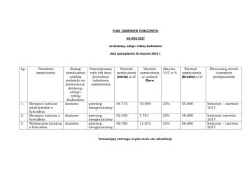 PLAN ZAMÓWIEŃ PUBLICZNYCH NA ROK 2017 na dostawy