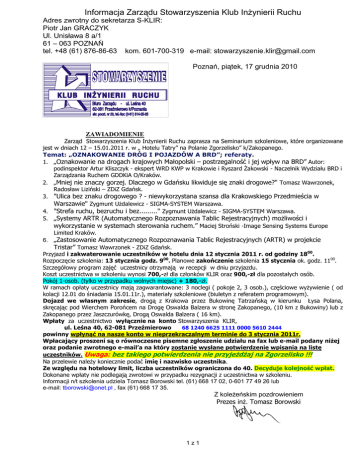 Informacja Zarządu Stowarzyszenia Klub InŜynierii Ruchu