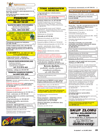 Ogłoszenia... Budowa domów, tynki agregatem, malowanie, elewacje, remonty, tel. 698 968 928 (13) Budowa domów jednorodzinnych, (19) tel. 608 138 592 Hydraulik instalacje, remonty, tanio, (20) tel. 601 640 302 Posadzki agregatem spalinowym tel. 697 726 021 (22) Kancelaria finansowa biuro rachunkowe Krystyna Chojnowska tel. 602 840 093 „KLON” – USŁUGI OGRODNICZE Układanie kostki profesjonalnie, tel. 504 597 061 (40) (27) Angielski – indywidualnie: dzieci, dorośli, przygotowanie do matury, pomoc w lekcjach, tel. 796 506 136 (41) (30) Budowa domów, wykończenia, remonty, tel. 602 631 629 (42) (27/13) (40) (44) Krycie dachów, podbitki, więźby dachowe, ocieplenia poddaszy, tel. 699 294 870 (51) Układanie kostki brukowej, tanio, tel. 518 461 066 (52) Zespół muzyczny HEROS, wesela, zabawy, imprezy okolicznościowe, tel. 508 647 236 (53) (77) (82) (99) (103) Instalacje elektryczne, pomiary, uprawnienia, tel. 517 547 421 (102) (120) (125) JuranD – Brukarstwo, kompleksowe układanie kostki, szybka realizacja zamówienia, niskie ceny, tel. 514 422 100 (197) (5/14) (243) Fotograf Video, tanio, tel. 602 408 231 (60) Motoryzacja Nissan Primera, 2TD, 2001 r., tel. 607 604 680 (11) BMW 520, rok 2009, pierwszy właściciel, tel. 607 628 600 (14) Praca Firma Eko – Sam Bis zatrudni kierowcę kat. B + C lub mile widziane E. Miejsce pracy: Jakubów, tel. 25 757 90 93 (204) Przyjmę do pracy fryzjerkę, tel. 508 386 464 (4) Fizjoterapeuta, CV na adres: [email protected] (37) Zatrudnię ekspedientkę do delikatesów HE – MAN, Dębe Wielkie, tel. 604 535 086 (40) Zatrudnię ekspedientkę do pracy na rynku, tel. 517 845 510 (41) Zatrudnię mechanika oraz pomocnika mechanika samochodów ciężarowych, atutem będą aktualne uprawnienia C+E, tel. 505 120 370 (42) Salon Angelika zatrudni fryzjerkę i kosmetyczkę, tel. 500 016 486 (43) Przyjmę brukarzy, tel. 518 461 066 (44) Zatrudnię mechanika / elektromechanika samochodowego z doświadczeniem, Choszczówka Stojecka, tel. 601 359 441 (45) Zatrudnię osobę do opieki nad starszą panią chodzącą, tel. 600 255 068 (47) Zlecę przecieranie drewna na traku własnym lub powierzonym. Kontakt na e-mail: sekretariat@luxsc. pl lub tel.606 665 331, tel./fax 25 758 67 14 (46) (63) Układanie kostki brukowej, tel. 511 582 323 (101) Limuzyny do ślubu, tel. 606 354 539 Układanie kostki, niwelacja terenu i usługi ogólnobudowlane, tel. 504 428 835 (43) Pranie dywanów, wykładzin, tapicerek samochodowych, meblowych, tel. 505 975 654 (48) Wykończenie wnętrz, gładź gipsowa, malowanie, ścianki k-g, układanie paneli, tel. 503 008 987 (96) Elektryka, hydraulika, uprawnienia, tel. 510 234 465 Ocieplanie budynków, podbitki dachowe, wykończenia wnętrz, gipsowanie, malowanie, panele, ocieplanie podaszy, tel. 506 606 008 Piaskowanie maszyn i felg, tel. 668 034 709 Remonty, elewacje, adaptacja poddaszy, układanie (78) paneli, tel. 500 295 476 Usługi hydrauliczne, tel. 502 686 023 (34) (33) Świadectwa energetyczne budynków, tel.605 629 225 Gładź – malowanie, tel. 505 305 618 (25) (39) (32) Ginekolog – zabiegi, tel. 530 330 789 Elektryk, tel. 502 947 517 (15) Pożyczki bez BIK do 25 000 zł, tel. 730 940 022 - budowa domów - docieplenia budynków - wykończenia wnętrz BUDOWA DOMÓW, tel. 603 555 572 Instalacje elektryczne, tel. 607 604 680 Produkty bezglutenowe oraz bezcukrowe, dekoracje na torty, sklep owoce – warzywa, ul. Konstytucji 3 Maja 2/8 Mińsk Mazowiecki, tel. 608 622 947 (35) Usługi ogólnobudowlane Docieplenia budynków, roboty ogólnowykończeniowe tel. 605 657 348 UKŁADANIE TAPET DEKORACYJNYCH, malowanie wnętrz, tel. 516 561 500 (13) (38) Geodeta, tel. 602 411 463 Usługi parkieciarskie – układanie, cyklinowanie, panele, tel. 660 684 902 (6) Układanie kostki, tel. 504 428 835 (28) TYNKI AGREGATEM, TEL. 695 995 330 Usługi remontowo-wykończeniowe, glazura, terakota, płyta gips-karton, tel. 25 759 17 43, 600 219 696 tel. 512 810 483 Usługi hydrauliczne i wykończeniowe, tel. 694 173 435 Dekoracje sal weselnych, tel. 602 752 864 www.firma–klon.pl www.geodarbud.pl (124) Hydraulik, tel. 697 055 884 tel. 501 353 747 Świadectwa energetyczne budynków, tel. 601 750 996 tel. 509 622 958 Czy już przegrałeś swoje wesele? Odśwież wspomnienia – przegrywanie kaset video na DVD, ul. Konstytucji 3 Maja 2/8 Mińsk Mazowiecki, tel. 608 484 489 (26) Wykończenia, tel. 502 640 501 (29) (23) projektowanie i urządzanie ogrodów, terenów zieleni, trawniki, automatyczne podlewanie, cięcie drzew, (25) Korepetycje, matematyka, tel. 607 298 554 Tynki agregatem (46) BUDOWA domów jednorodzinnych, więźby dachowe, krycie dachów, wolne terminy, tel. 696 800 859 (54) Producent szamb i zbiorników betonowych, transport HDS, montaż, tel. 514 210 557 (55) Rehabilitacja dzieci metodą Bobath, tel. 888 444 966 (56) Firma remontowo – budowlana wykona: stawianie domów, remonty, prace wykończeniowe, tel. 511 974 096 (57) Manicure hybrydowy, przedłużanie, tipsy, tel. 503 958 775 (58) Stolarstwo, tel. 693 147 647 (59) Firma z siedzibą w okolicy Mińska Maz. zatrudni MAGAZYNIERÓW, obowiązki: przyjmowanie dostaw, kompletowanie zamówień do wysyłki, inwentaryzacje, dokumentacja. Oczekiwania: doświadczenie na stanowisku, uprawnienia na wózek widłowy, obsługa komputera. Zgłoszenia: [email protected] (50) Zatrudnię ekspedientkę z doświadczeniem na stoisko mięsne i ogólnospożywcze do sklepu spożywczego, Stara Miłosna. CV na e-mail: [email protected] lub tel. 609 056 604 (51) Zatrudnię ślusarza – spawacza TIG, tel. 606 859 099 (52) Zatrudnię tynkarza do tynków agregatem, tel. 503 839 018 (53) Zatrudnię brukarza i pomocników, tel. 514 422 100 (54) Zatrudnię osobę z pasją do gotowania i pieczenia ciast w kawiarni, tel. 509 992 489 (55) Zatrudnię ekspedientkę do sklepu spożywczego w Cegłowie, tel. 698 562 737 Firma transportowa zatrudni kierowców w transporcie krajowym, kat. C + E, tel. 605 600 120 (57) (58) 