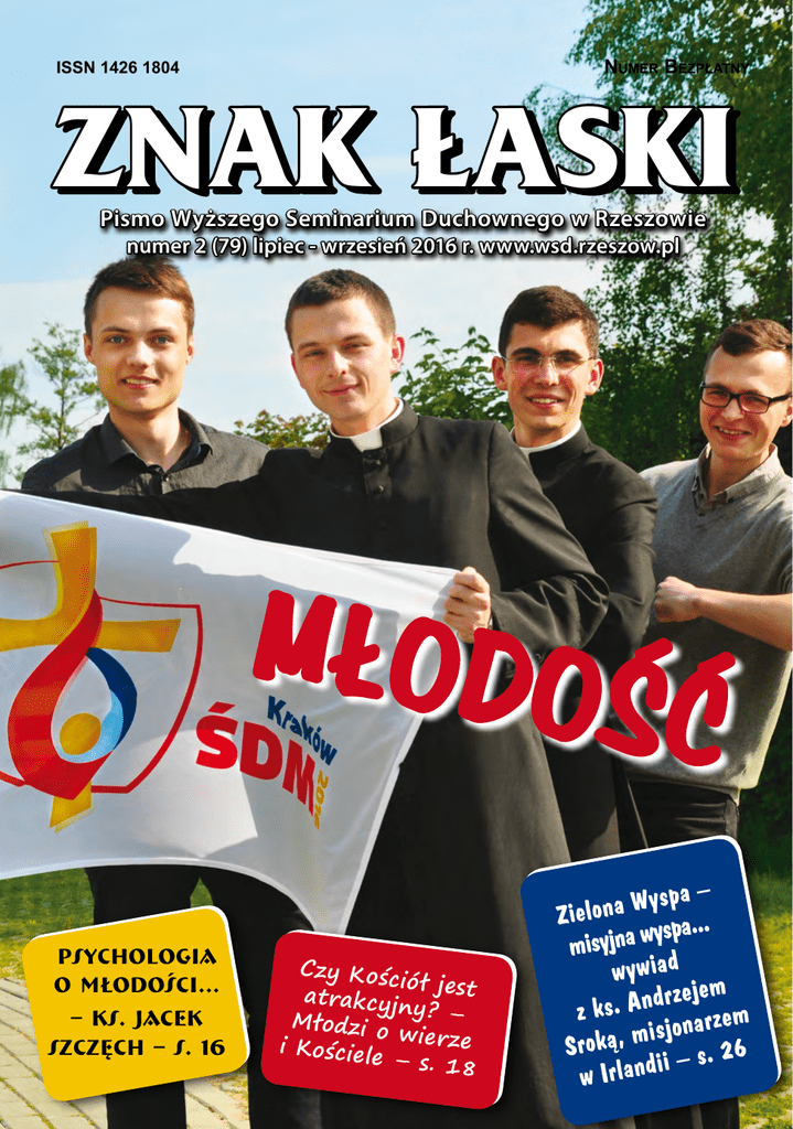 Numer Bezpłatny ISSN 1426 1804 ZNAK £ASKI Pismo Wyższego Seminarium Duchownego w Rzeszowie numer 2 (79) lipiec - wrzesień 2016 r. www.wsd.rzeszow.pl Młod Psychologia o młodości... – ks. Jacek Szczęch – s. 16 Czy Kośc iół jest atrakcyj ny? – Młodzi o wier ze i Kościele – s. 18 ość spa – y W a n o l Zie yspa... w a n j y s i m wywiad drzejem z ks. An narzem isjo Sroką, m – s. 26 ii w Irland temat nu meru Młodo kl. Mateusz Lechwar Kochani czytelnicy! Tegoroczne wakacje są czasem, w którym Kościół w Polsce staje przed ogromnym wyzwaniem jakim jest organizacja XXXI Światowych Dni Młodzieży w Krakowie. To wielkie święto młodych, zapoczątkowane przez św. Jana Pawła II jest nie tylko okazyjnym spotkaniem ludzi z całego świata, ale przede wszystkim celebracją wiary, wielkim świadectwem chrześcijańskiego życia! Faktem jest, że przeważającą większością na tych spotkaniach są ludzie młodzi, to oni pełni energii i zapału płynących od Ducha Świętego, niosą radosną Nowinę, aż po krańce świata. Bóg jest dobrym Gospodarzem, który ze swego skarbca wydobywa rzeczy nowe i stare (Mt 13, 52), aby przez pokolenia Jego chwała trwała na całym świecie. Spotkanie młodych jest możliwe dzięki wielopokoleniowej trosce o depozyt wiary. Każdy, kto w takim spotkaniu bierze udział musi mieć tego świadomość. Znak Łaski Pismo WSD w Rzeszowie ul. Witolda 11a 35-302 Rzeszów tel. 17 871 24 00 fax. 17 871 24 36 www.znak.wsd.rzeszow.pl E-mail: [email protected] 2 ść Numer Znaku Łaski, który Wam przekazujemy, jest szczególnie poświęcony Światowym Dniom Młodzieży. Jednocześnie podjęty w takim kontekście temat młodości zachęca do refleksji nad tym okresem ludzkiego rozwoju. Jak dziś na świat patrzy młody człowiek? Czego oczekuje od dorosłych? Czy potrzebuje Chrystusa i Kościoła, aby się rozwijać? Co o okresie młodości mówi Pismo Święte, a co nauka? Na niektóre z tych pytań staramy się odpowiedzieć, inne wciąż pozostają bardzo osobistymi i możliwymi do skonfrontowania z rzeczywistością dopiero wtedy, gdy nasza młodość przeminie. Czy jednak przeminie do końca…? Każdy z nas ma przecież w sobie jakąś cząstkę młodości… i nie chodzi tu tylko o wiek czy wygląd zewnętrzny. Każdy ma w sobie miłość Boga, która jest ciągle młoda, świeża, która co rano się odnawia i trwa! Przekazując Wam Drodzy Czytelnicy rozważania na temat młodości, oraz kilka świadectw, mamy nadzieję, że będą one ubogacające i sprawią, że rozradują się Wasze serca! Teksty jakie przygotowaliśmy są spojrzeniem na świat oczami ludzi młodych, pełnych radości, zapału, ideałów i Boga. Czy patrząc w takim duchu, każdy z nas nie jest młody? Życzymy miłej lektury! kl. Mateusz Lechwar Zespół redakcyjny: ks. dr Paweł Synoś (opiekun), kl. Mateusz Lechwar – red. naczelny, kl. Robert Żarnowski, kl. Daniel Sączawa, kl. Tomasz Kiebała, Zdjęcia: kl. Tomasz Świątek, Na okładce: kl Tomasz Świątek, dk. Tomasz Świętoń, kl. Jakub Oczkowicz, kl. Piotr Łojek, Skład i łamanie: Małgorzata Ferfecka Kolportaż: redakcja Wydawca: Stowarzyszenie Przyjaciół WSD w Rzeszowie Konto Stowarzyszenia: PKO BP I Oddział w Rzeszowie nr 05 1020 4391 0000 6302 0002 3093 Druk: „BONUS LIBER” Sp. z.o.o. 35-020 Rzeszów, ul. 17 Pułku Piechoty 7 Nakład: 4500 egz. ISSN 1426 – 1804 4–6 Spis Tr eści Z życia Seminarium Kronika wydarzeń seminaryjnych – kl. Tomasz Świątek ,,Wierny przyjaciel potężną obroną” 7 – Kronika Stowarzyszenia Przyjaciół WSD – kl. Jakub Gunia 8–9 Diakonat i Prezbiterat 2016 – kl. Hubert Cop Neoprezbiterzy 2016 10–11 Temat numeru 12–13 Historia ŚDM – kl. Grzegorz Petka 14 ŚDM – Kraków 2016 – kl. Robert Firek 15 Czekając na młodych! – Rozmowa z ks. Krzysztofem Golasem – diecezjalnym Duszpasterzem Młodzieży 16–17 Psychologia o młodości… – ks. Jacek Szczęch Czy Kościół jest atrakcyjny? – 18–19 Młodzi o wierze i Kościele 20 Młodości, ty nad poziomy wylatuj! – Prof. Kazimierz Ożóg 21 Młodość oczami Biblii – kl. Kamil Bambrowicz Młodzi przyszłością Kościoła! – 22 kl. Piotr Łoboda 23 Świadectwa Byłem na ŚDM – kl. Jakub Oczkowicz 24–25 Jestem osobą młodą, która…– Świadectwa kleryków 26–28 Zielona Wyspa – misyjna wyspa… wywiad z ks. Andrzejem Sroką, misjonarzem w Irlandii. 29 30 Rozmaite Kleryk na wakacjach – kl. Jakub Lorenc Krzyżówka Biblijna… z nagrodami! „Błogosławieni miłosierni, albowiem oni miłosierdzia dostąpią”. (Mt 5,7) 3 Z ż yc i a S e m i na r i u m K ronik a w ydarzeń s eminaryjnych św. Kazimierza królewicza. Po zakończeniu Mszy świętej Ksiądz Biskup spotkał się z nami na uroczystej kolacji dzieląc się swoimi wspomnieniami. kl. Tomasz Świątek Spotkanie ze Wspólnotą Cenacolo We wtorek 23 lutego, gościliśmy dwóch przedstawicieli Wspólnoty Cenacolo - Adama i Piotra. Wspólnota ta pomaga osobom uzależnionym, w przezwyciężeniu swych złych nawyków. Nasi goście opowiedzieli nam o własnym doświadczeniu uzależnienia i odnalezieniu właściwej drogi we Wspólnocie. Ich świadectwo pokazało nam wartość wspólnoty oraz to, że prawdziwa przyjaźń z Jezusem potrafi przezwyciężyć każde ciemności w życiu. Imieninowe spotkanie z Księdzem Biskupem Kazimierzem Górnym W środę 2 marca w naszej wspólnocie swoje imieniny obchodził Ksiądz Biskup Kazimierz Górny. W homilii podkreślał wartość wiary oraz jej wpływ na losy państwa Polskiego. Przybliżył także życiorys swego patrona, 4 Rekolekcje Wielkopostne W dniach 8-12 marca przeżywaliśmy rekolekcje wielkopostne. Naszym duchowym przewodnikiem był Ksiądz Biskup Jan Niemiec. W ich trakcie Ksiądz Biskup w sposób alegoryczny wyjaśniał wybrane teksty Pisma Świętego, często odwołując się do nauki Ojców Kościoła i Świętych. Od początku uświadamiał nam, że wszystko co