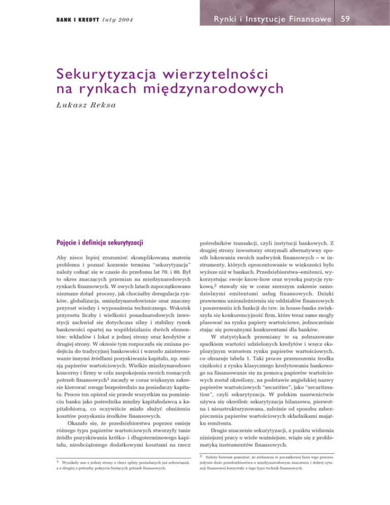 Sekurytyzacja wierzytelnoŹci na rynkach mi