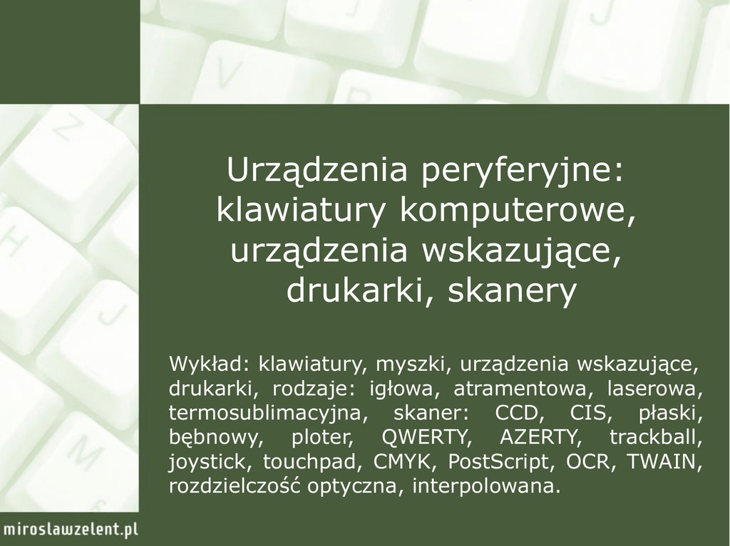 Urządzenia peryferyjne: klawiatury komputerowe, urządzenia