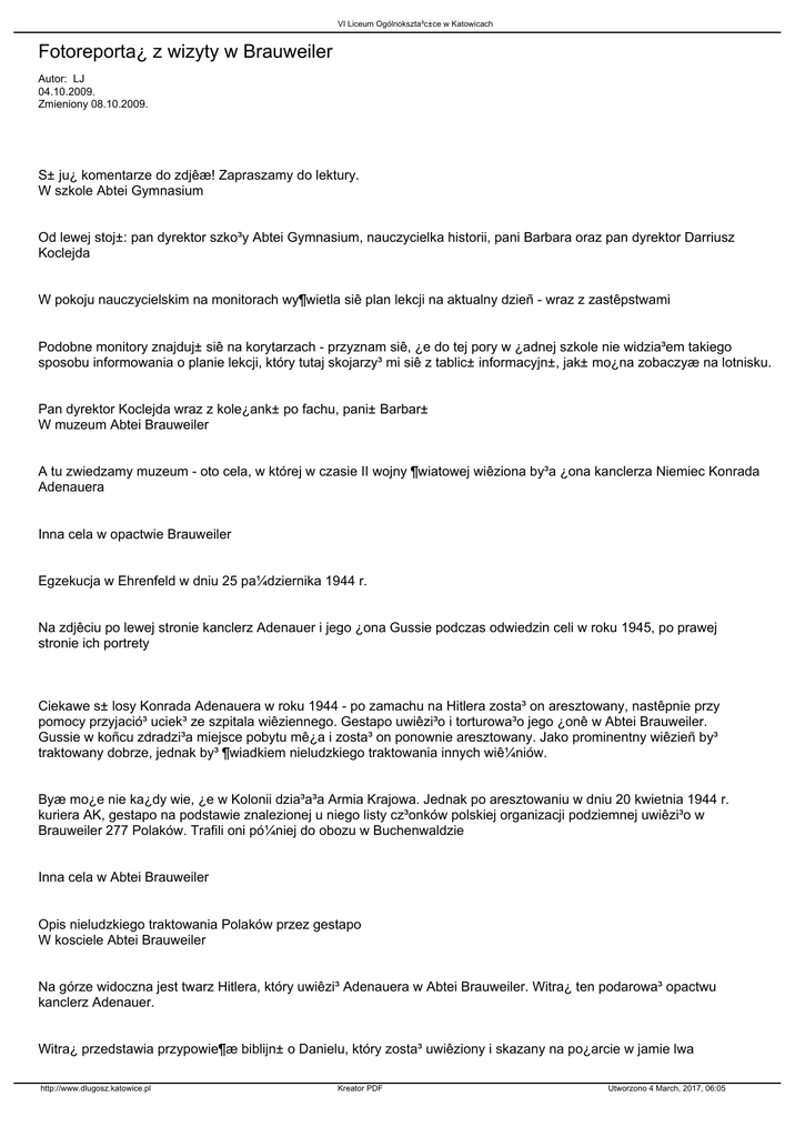 traktowany jednak przez niektórych koloñczyków, np. pana dyrektora szko³y Abtei Brauweiler nieco z przymru¿eniem oka,