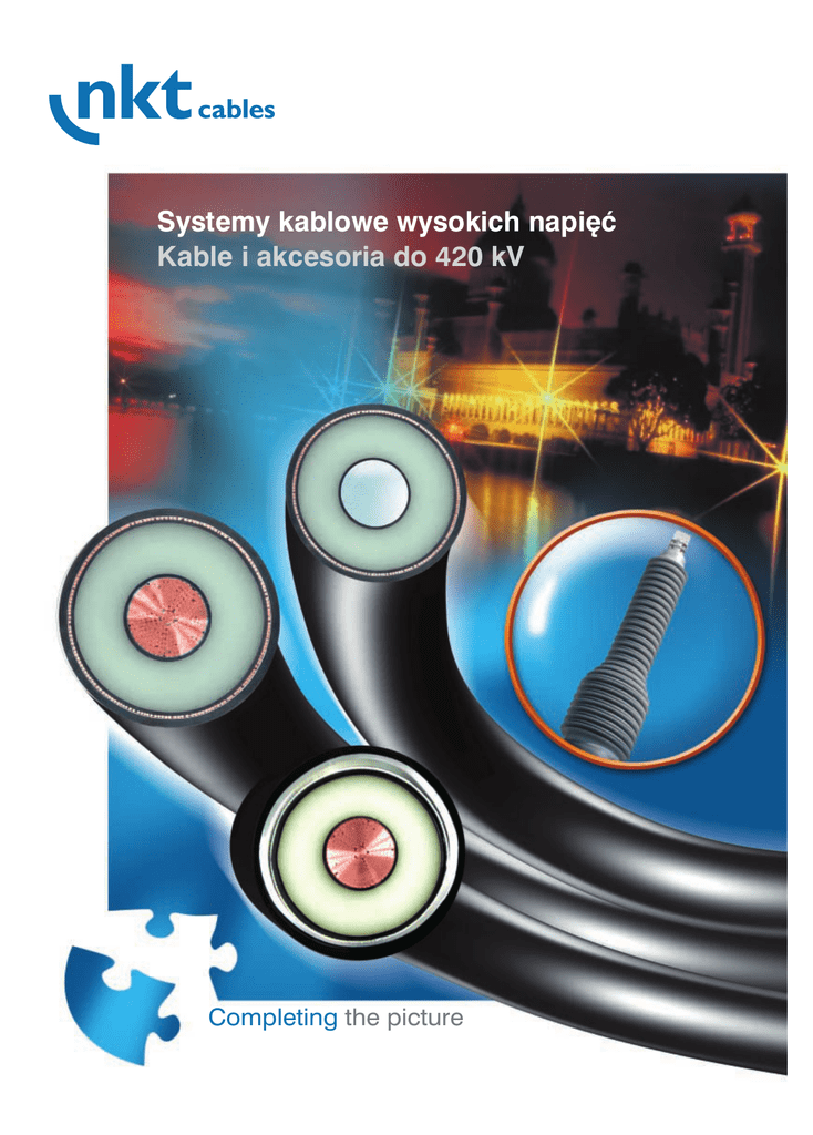 Systemy kablowe wysokich napiêæ Kable i akcesoria do 420 kV Completing the picture nkt cables wiat oczekuje na niezawodne i dostêpne zasilanie energi¹ elektryczn¹ Dzisiaj nie do pomylenia jest wiat bez zasilania energi¹ elektryczn¹. Elektrycznoæ jest tak potrzebna do ¿ycia, jak powietrze do oddychania. Poniewa¿ przyjmujemy za pewnik, ¿e bêdziemy mieæ elektrycznoæ na co dzieñ w domach, w ruchu ulicznym, w pracy, w przemyle jest niezwykle wa¿ne, aby eliksir ¿ycia dociera³ do odbiorcy niezawodnie i ekonomicznie. Zdajemy sobie sprawê z tej odpowiedzialnoci. Dlatego nasi klienci mog¹ oczekiwaæ, ¿e produkty dostarczane przez nkt cables bêd¹ optymaln¹, niezawodn¹ czêci¹ ¿yciowego nerwu przesy³u energii elektrycznej. Trzymajcie nas za s³owo! Prowadzimy Wasz¹ energiê Czym jest firma nkt cables? 1 Kolonia 2 Nordenham 3 Hettstedt 4 Asnaes 5 Stenlille 6 Kladno 7 Czechowice-Dziedzice 8 Warszowice 9 Drammen nkt cables GmbH stanowi czêæ grupy nkt cables GmbH, która wywodzi siê z duñskiego NKT CABLES z zak³adami w Danii i w Polsce oraz dawnego Felten & Guilleaume Kabelkwerke GmbH z zak³adami w Niemczech, Republice Czeskiej i Chinach. Siedziba firmy znajduje siê w Kolonii. Obecnie firma sk³ada siê z 9 zak³adów w 5 krajach europejskich i jednego zak³adu w Chinach. 9 4 5 2 1 3 7 6 8 10 Changzhou 10 2 Spis treci Kable 4 Asortyment 4 Konstrukcja i produkcja 4 Dane techniczne Systemy kablowe wysokich (WN) i najwy¿szych (NN) napiêæ s¹ projektowane i produkowane w fabryce w Kolonii (dawne zak³ady Felten & Guilleaume Kabelwerke GmbH). Kable jedno¿y³owe XLPE z ¿y³¹ powrotn¹ z drutu miedzianego i pow³ok¹ APL 5 Kable jedno¿y³owe XLPE 110 kV z ¿y³¹ powrotn¹ z drutu miedzianego i pow³ok¹ APL (konstrukcja standardowa) 6 Kable jedno¿y³owe XLPE 110 kV z ¿y³¹ powrotn¹ z drutu miedzianego i pow³ok¹ APL (konstrukcja zoptymalizowana) 7 Kable jedno¿y³owe XLPE 132 kV z ¿y³¹ powrotn¹ z drutu miedzianego i pow³ok¹ APL (konstrukcja standardowa) 8 Nasza fabryka w Kolonii produkuje kable WN od 1929 roku a w izolacji XLPE od 1978 roku oraz osprzêt kablowy WN. Tam te¿ pracuje nasz zespó³ specjalistów odpowiedzialnych za rozwój produktu, planowanie, projektowanie, optymalizacje kosztów, produkcjê, logistykê, instalacje oraz obs³ugê zamówieñ. Kable jedno¿y³owe XLPE 132 kV z ¿y³¹ powrotn¹ z drutu miedzianego i pow³ok¹ APL (konstrukcja zoptymalizowana) 9 Zoptymalizowane systemy komunikacji wewnêtrznej, wyspecjalizowane dzia³y i intensywnie szkoleni cz³onkowie zespo³u pozwalaj¹ na zaproponowanie optymalnych rozwi¹zañ dla naszych klientów. Ten zespó³, który ma prawo byæ dumny z wielu pionierskich technologii w przesz³oci ju¿ dzisiaj realizuje techniczne wymagania przysz³oci. Zespó³ WN nkt cables ma miêdzynarodowe dowiadczenie. Systemy kablowe WN z Kolonii niezawodnie pracuj¹ w Europie oraz Azji i Ameryce. Ka¿dy ze zrealizowanych projektów mia³ swoj¹ specyfikê. Nie ma wiêc dwóch takich samych rozwi¹zañ. Ka¿dy z projektów jest cile dostosowany do oczekiwañ klientów i wymogów zwi¹zanych z miejscem instalacji. Zawsze jednak bezpieczeñstwo i ekonomia s¹ dla nas na pierwszym miejscu. Kable jedno¿y³owe XLPE 220 kV z ¿y³¹ powrotn¹ z drutu miedzianego i pow³ok¹ APL 10 Kable jedno¿y³owe XLPE 400 kV z ¿y³¹ powrotn¹ z drutu miedzianego i pow³ok¹ APL 11 Kable jedno¿y³owe XLPE z pow³ok¹ o³owian¹ 12 Kable jedno¿y³owe XLPE 400 kV z pow³ok¹ o³owian¹ 12 Kable jedno¿y³owe XLPE z ¿y³¹ powrotn¹ z drutu miedzianego i pow³ok¹ o³owian¹ 13 Kable jedno¿y³owe XLPE z korugowan¹ pow³ok¹ aluminiow¹ 13 Kable miejskie CityCables 14 Kable gazowe cinieniowe 16 Kable o nape³nieniu gazowym 18 Kable olejowe 20 Kable do zastosowañ awaryjnych 22 Akcesoria 24 Zakres produktów 24 Konstrukcja i produkcja 24 Dane techniczne G³owice napowietrzne 25 G³owice do transformatorów i rozdzielnic 26 Mufy prefabrykowane do kabli XLPE 27 Mufy przejciowe 28 Inne akcesoria 29 Instalacja i us³ugi 30 Prace projektowe 30 Prace instalacyjne 30 Kontrakty na us³ugi 31 Kursy dla monterów 31 Badania systemów 32 Prace badawczo-rozwojowe i innowacje 32 Zapewnienie jakosci i odpowiedzialnosæ za srodowisko 33 3 Kable Asortyment Oprócz kabli w izolacji XLPE (polietylen usieciowany), nkt cables nadal produkuje kable w izolacji papierowej. Produkcja obejmuje dobrze znane kable gazowe i olejowe. 72,5 123 145 Kable olejowe Um/kV X X X 170 Kable gazowe cinieniowe X X X X Kable o nape³nieniu gazowym X X Kable XLPE X X X X 245 300 420 X X X Projektowanie i produkcja nkt cables oferuje szeroki wachlarz Produkowane ¿y³y robocze spe³niaj¹ ¯y³y powrotne i uszczelnienia konstrukcji kabli WN, aby zapewniæ wymagania norm Konwencjonalne kable w izolacji rozwi¹zania najbardziej dostosowane do narodowych i miêdzynarodowych. ¯y³y papierowej wymagaj¹ odpornej na potrzeb naszych klientów. robocze do zastosowañ specjalnych mog¹ cinienie i wodoszczelnej os³ony meta- byæ produkowane w wykonaniu wodo- lowej, dzia³aj¹cej równie¿ jako ¿y³a szczelnym. powrotna. W nkt cables stosuje siê ¯y³y robocze odpowiednich wyt³aczane pow³oki o³owiane oraz ¯y³y robocze kabli mog¹ byæ zrobione z miedzi lub aluminium. Wybór zale¿y od Izolacja korugowane pow³oki aluminiowe (CSA). preferencji klienta lub obci¹¿alnoci Izolacje kabli olejowych oraz kabli ruro- Te rodzaje pow³ok metalowych stosuje pr¹dowej. ¯y³y robocze jednodrutowe wych s¹ wykonane z wysokiej jakoci siê oczywicie równie¿ dla kabli z izolacj¹ o du¿ych przekrojach wykonywane s¹ papierów izolacyjnych metod¹ owijania. XLPE. Pow³oki o³owiane zapewniaj¹ z aluminium. Nastêpnie orodki kabli izolowanych mniejsze wymiary, a pow³oki aluminiowe papierem s¹ impregnowane w kadziach zapewniaj¹ wysoki poziom pr¹du zwar- z syciwem kablowym o odpowiedniej ciowego i mniejszy ciê¿ar. Dostêpne konstrukcje ¿y³ roboczych: okr¹g³e jednodrutowe do 120