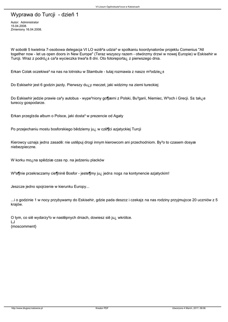 W sobotê 5 kwietnia 7-osobowa delegacja VI LO wziê³a udzia³ w spotkaniu koordynatorów projektu Comenius "All
