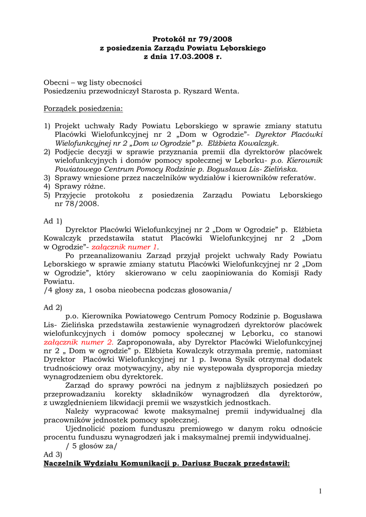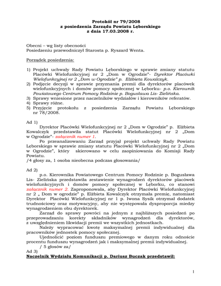 1 Protokół nr 79/2008 z posiedzenia Zarządu Powiatu Lęborskiego z