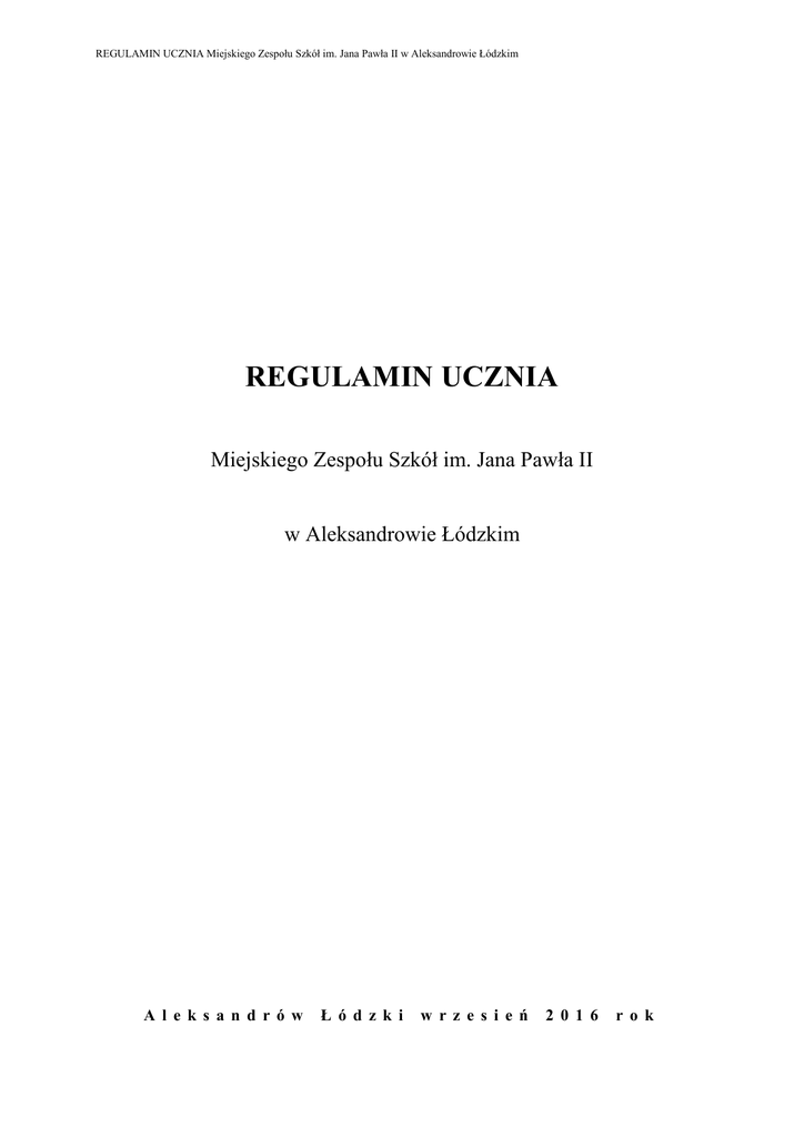 regulamin ucznia - Miejski Zespół Szkół im. Jana Pawła II