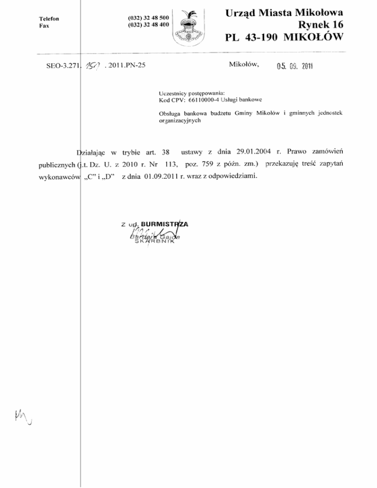 W odpowi zi na zaptltanie,,C"tnformujemlt,ze: