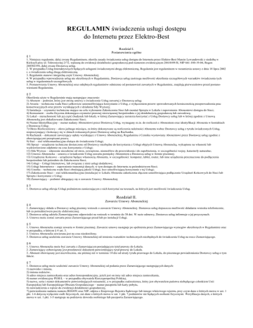 REGULAMIN świadczenia usługi dostępu do Internetu przez Elektro