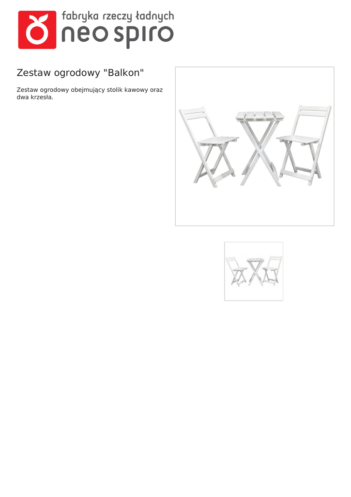 Zestaw ogrodowy "Balkon" Zestaw ogrodowy obejmujący stolik kawowy oraz dwa krzesła. Powered by TCPDF (www.tcpdf.org)