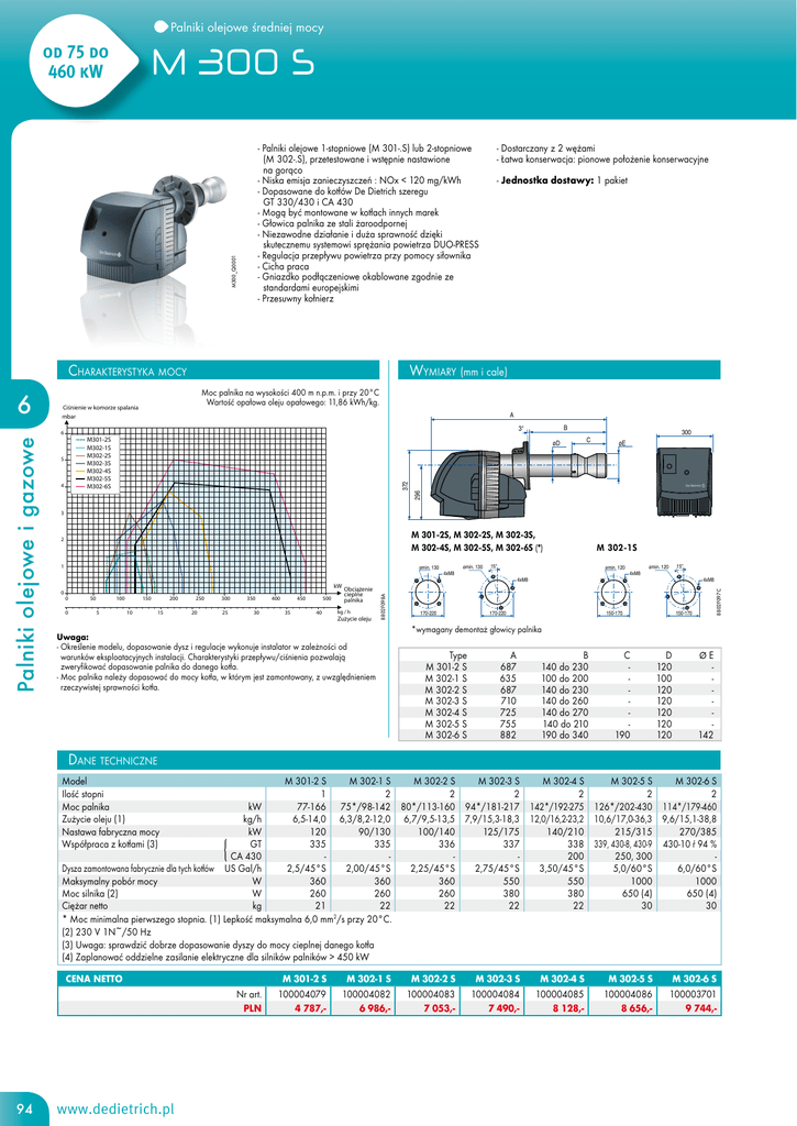 - Palniki olejowe 1-stopniowe (M 301-.S) lub 2-stopniowe