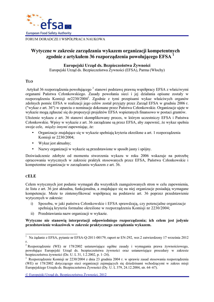 zgodnie z artykułem 36 rozporządzenia powołującego EFSA 1
