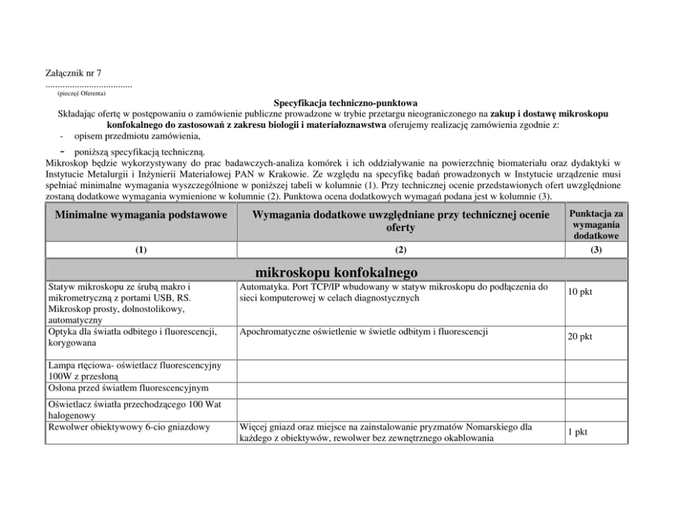 Specyfikacja techniczno-punktowa - Instytut Metalurgii i Inżynierii
