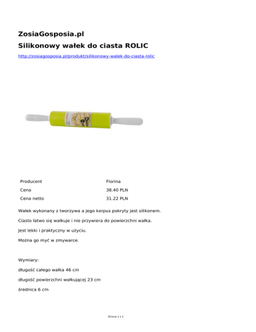 ZosiaGosposia.pl Silikonowy wałek do ciasta ROLIC http://zosiagosposia.pl/produkt/silikonowy-walek-do-ciasta-rolic Producent Florina Cena 38.40 PLN Cena netto 31.22 PLN Wałek wykonany z tworzywa a jego korpus pokryty jest silikonem. Ciasto łatwo się wałkuje i nie przywiera do powierzchni wałka. Jest lekki i praktyczny w użyciu. Można go myć w zmywarce. Wymiary: długość całego wałka 46 cm długość powierzchni wałkującej 23 cm średnica 6 cm Strona 1 z 1