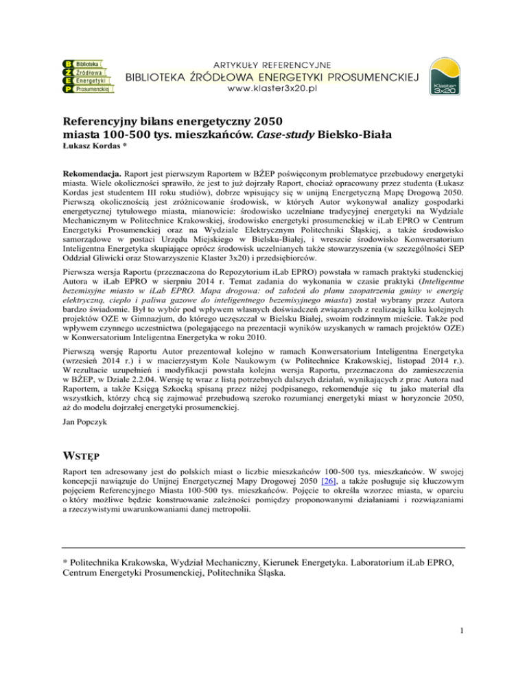 Referencyjny bilans energetyczny 2050 miasta 100