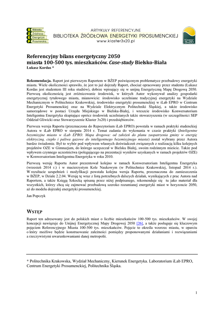 [20] Sołtysek P. Efektywno ć energetyczna w Bielsku-Białej, dost pŚ http://www.energiaisrodowisko.pl/poradyekspertow/1procent.pdf .
