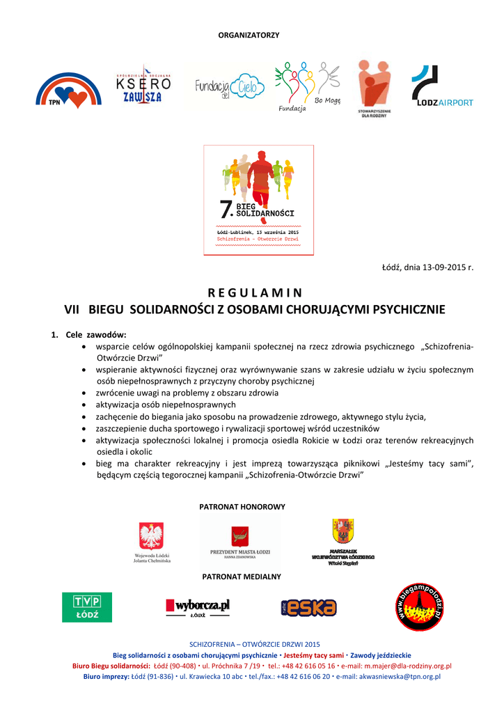 regulamin vii biegu solidarności z osobami chorującymi psychicznie