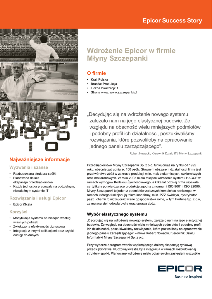 Wdrożenie Epicor w firmie Młyny Szczepanki Epicor Success Story