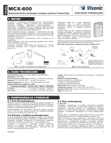 VISONIC CENTRAL EUROPE (POLSKA & CE) 01-698 WARSZAWA, SMOLE SKIEGO 2, TEL. (022) 639-34-36 FAX (022) 833-48-60