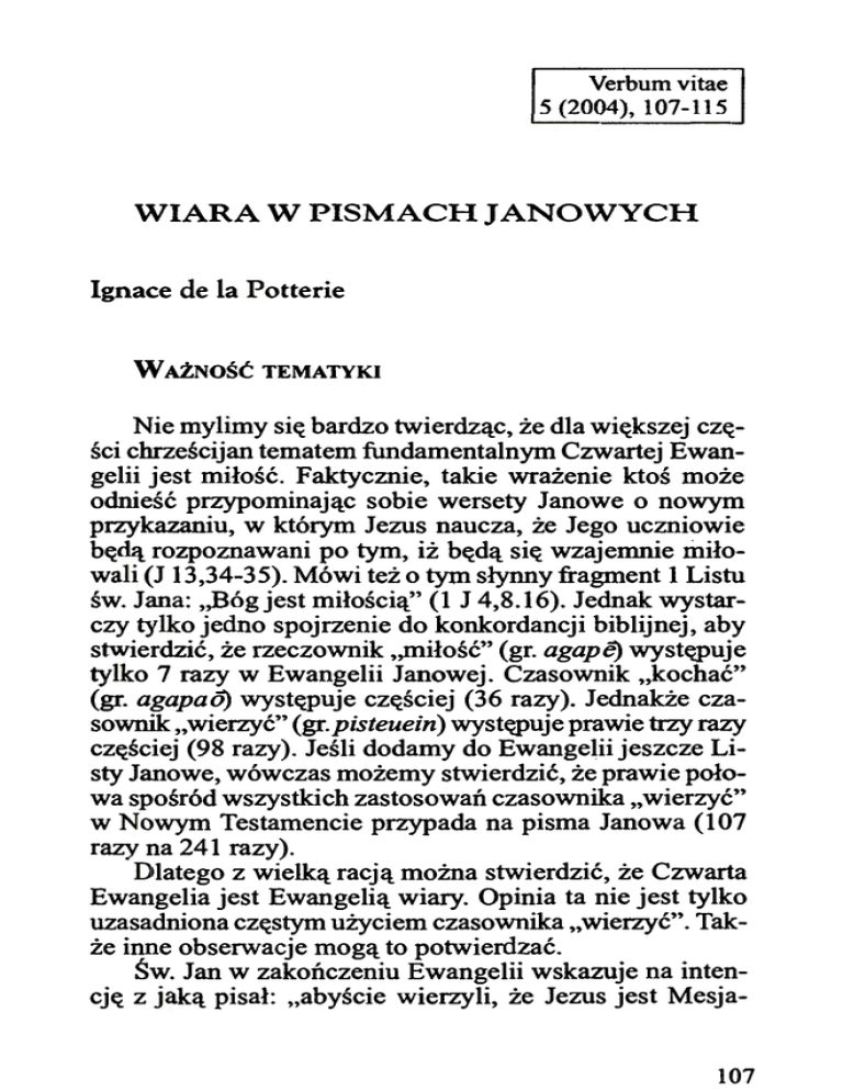 I. de la Potterie in his artide underlines the importance of the reality of faith in the Johannine writings. The
