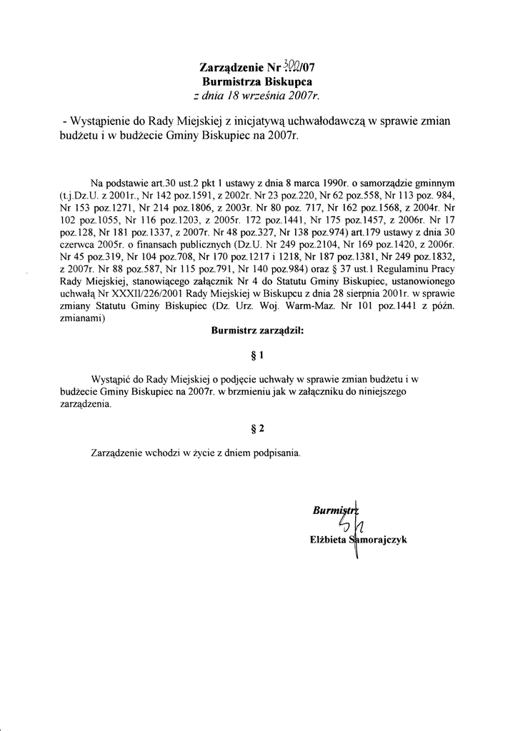 budżecieGminy Biskupiecna2007r'w brzmieniujak w załącznlku