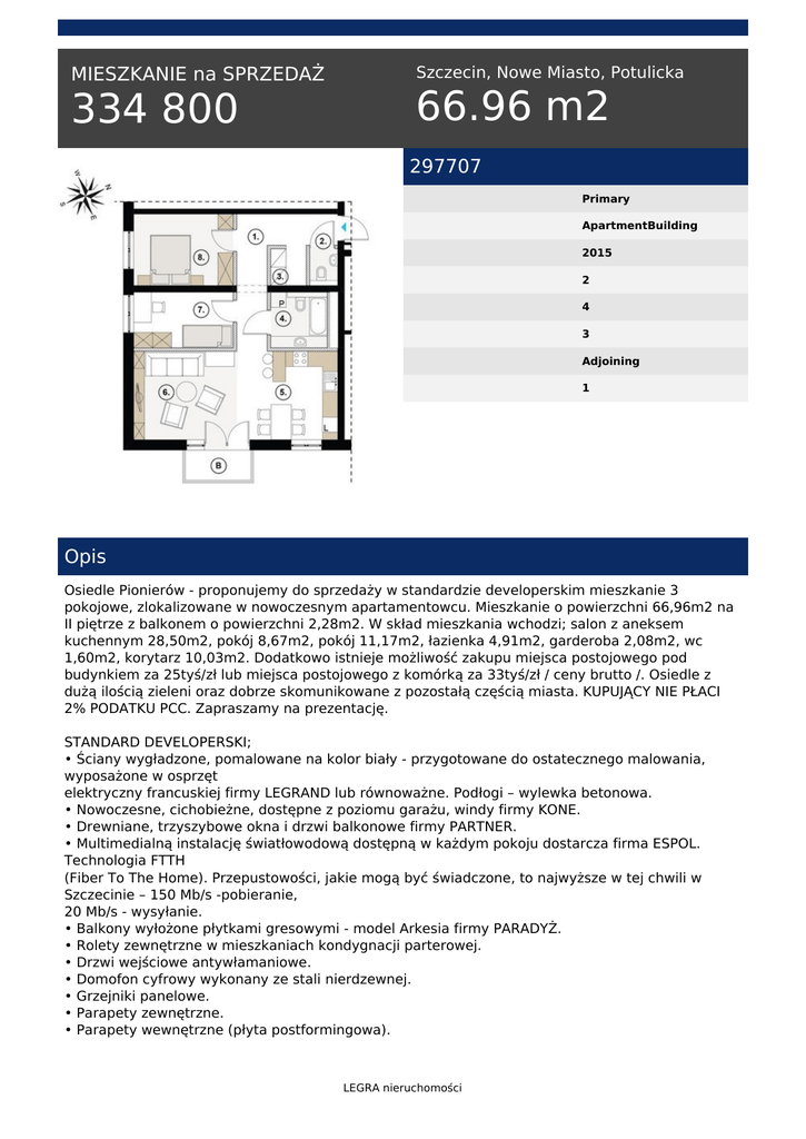 334 800 66.96 m2 - Legra Nieruchomości