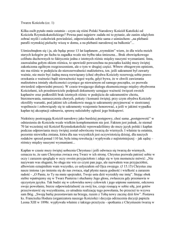 Twarze Kościoła (cz. 1) Kilka osób pytało mnie ostatnio - czym się różni Polski Narodowy Kościół Katolicki od Kościoła Rzymskokatolickiego? Pewna pani najpierw zadała mi to pytanie, ale zanim zdążyłem zebrać myśli i cokolwiek powiedzieć, odpowiedziała sobie sama z uśmiechem: „na plebanii parafii rzymskiej pieluchy wiszą w domu, a na plebanii narodowej na balkonie”... Uśmiechnąłem się i ja, ale będąc przez 13 lat kapłanem „rzymskim” wiem, że dla wielu moich starych kolegów po fachu ta zagadka wcale nie byłba taka śmieszna... Brak obowiązkowego celibatu duchownych to faktycznie jedna z istotnych różnic między naszymi wyznaniami. Inna, zauważalna gołym okiem różnica, to spowiedź powszechna na początku każdej mszy świętej zakończona ogólnym rozgrzeszeniem, ale o tym w drugiej części. Wbrew obiegowym opiniom, nie ma różnic w podejściu do nierozerwalności małżeństwa, tzn. jeśli sakrament był zawarty ważnie, nie może być żadną mocą rozwiązany (choć obydwa Kościoły rezerwują sobie prawo orzekania o ważności bądź nieważności tegoż węzła, gdyż bywa, że w chwili zawierania małżeństwa istniały okoliczności czyniące go nieważnym od samego początku, co pozwala stwierdzić odpowiedni proces). W czasie trwającego dialogu ekumenicznego między obydwoma Kościołami, ich przedstawiciele podpisali dokumenty uznające ważność święceń swoich kapłanów oraz podkreślili brak istotnych różnic w podejściu do sakramentów chrztu, bierzmowania, namaszczenia chorych, pokuty i komunii świętej; przy czym obydwa Kościoły określiły warunki, pod jakimi ich członkowie mogą te sakramenty przyjmować w siostrzanej wspólnocie i zobowiązały się te sakramenty wzajemnie honorować, a jeśli w jakimś wypadku kapłan tej akceptacji odmawia, sprawę należałoby zgłosić jego biskupowi. Niektórzy postrzegają Kościół narodowy jako bardziej postępowy, choć sama „postępowość” w odniesieniu do Kościoła wcale wielkim komplementem nie jest. Faktem jest jednak, że niemal 70 lat wcześniej niż Kościoł Rzymskokatolicki wprowadziliśmy do mszy język polski i kapłan podczas odprawiania mszy świętej został odwrócony twarzą do wiernych. I właśnie ta ostatnia, pozornie niewielka zmiana, która dla nas wszystkich jest oczywistością dzisiaj, dla naszych rodaków sprzed ponad 110 lat, była istną rewolucją i wypływała z najistotniejszej – jak sądzę – różnicy między naszymi wyznaniami... Kapłan w czasie mszy świętej uobecnia Chrystusa i jeśli odwraca się twarzą do wiernych, oznacza to, że sam Chrsystus zwraca swą Twarz w ich stronę. Chrystus pozwala patrzeć sobie w oczy i zarazem spogląda w oczy swoim przyjaciołom i zdaje się w tym momencie mówić: „Nie nazywam was sługami, bo sługa nie wie co czyni pan jego, ale nazwałem was przyjaciółmi, albowiem oznajmiłem wam wszystko, co usłyszałem od Ojca swojego. (J 15.15) Chrystus zna nasze imiona i po imieniu się do nas zwraca, stąd płynie nasza godność i wielkość a zarazem radość - „O Panie, to Ty na mnie spojrzałeś, Twoje usta dziś wyrzekły me imię”. Stojąc obok siebie wpatrujemy się w Twarz Pasterza i słuchamy Jego głosu, zwłaszcza gdy przemawia w ojczystym języku. Tak budzi się w człowieku nowy człowiek i jego uśpione sumienie, odczuwa swoje powołanie, bierze odpowiedzialność za swój los, czuje rosnącą w sobie siłę, jest gotów przeciwstawić się wszystkiemu, co utrudnia realizację tego powołania, bo przecież to wzywa sam Bóg. „Swoją barkę pozostawiam na brzegu, razem z Tobą nowy zacznę dziś łów”. Postawa ks. Franciszka Hodura (organizatora naszego Kościoła) i decyzja odrzucenia decyzji papieża Leona XIII w 1898r. wypływała właśnie z takiego przeżycia - spotkania z Chrystusem twarzą w Twarz. Wtedy zrodziła się w młodym księdzu siła zdolna pociągnąć tysiące Polaków w USA, utrudzonych, obciążonych i pozostawionych jak owce bez pasterza. Różnica między naszymi Kościołami polega więc w swej najgłębszej istocie w podejściu do sumienia oraz uszanowaniu go, jako ostatecznej instancji oceniającej człowieka. Gdy w Scranton doszło do konfliktu między parafianami a instytucjami Kościoła (najpierw z proboszczem, potem z biskupem, wreszcie z Papieżem), ks. Hodur posłuchał głosu swojego sumienia a nie głosu instytucji. Nie potrafił zrozumieć i zaakceptować decyzji urzędników watykańskich, którzy nawet nie dopuścili go przed oblicze Biskupa Rzymu, mimo że przybył specjalnie w tym celu zza oceanu z „Memoriałem” podpisanym przez 5 tysięcy naszych rodaków i rekomendacjami jednego z amerykańskich kardynałów. Ks. Franciszek a wraz z nim tysiące Polaków, choć mieli świadomość zagrażającej im eksomuniki, wybrali jednak posłuszeństwo własnemu sumieniu a nie Watykanowi i w ten sposób powstał Polski Kościół Reformowany, który przyjął później nazwę Polski Narodowy Kościół Katolicki. Nie było zatem różnic doktrynalnych, zachowaliśmy wspólne tradycje, zwyczaje, modlitwy, jednak przez ponad sto lat bolesnego podziału widzimy, że w Kościele narodowym utrwaliła się świadomość niezależności od Papieża. Utrwaliła się także rola ludzi świeckich w kierowaniu parafią i braniu odpowiedzialności za jej los, co po prawie 70-ciu latach, czyli na Soborze Watykańskim II pojawiło się również w Kościele Rzymskokatolickim. 15 lutego 1992 odbyło się w Scranton Nabożeństwo Gojenia Ran, w czasie którego przedstawiciel Papieża, Kard. Edward Cassidy i Pierwszy Biskup PNKK John Swantek poprosili siebie wzajemnie o przebaczenie, została zdjęta ekskomunika Papieża Leona XIII i ślubowano wysiłek nad przezwyciężeniem istniejących podziałów, dialog trwa. Tak długo, jak wpatrujemy się w tę samą Twarz i jak długo słuchamy tych samych słów Chrystusa, możemy śmiało wspólnie wyznawa