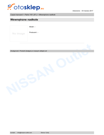 Utworzono : 04 marzec 2017 Części karoserii > Patrol Y61 (97-) > Wewnętrzne nadkole Wewnętrzne nadkole Model : - No image Producent : - t u Dostępność: Produkt dostępny w naszym sklepie od O N A S S I N kontakt : - [email protected] Strona 1/{nb} t le
