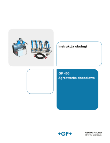 Instrukcja obsługi GF 400 Zgrzewarka doczołowa All rights reserved, in particular the rights of duplication and distribution as well as translation. Duplication and reproduction in any form (print, photocopy, microfilm or electronic) require the written permission of Georg Fischer Omicron S.r.l.. Operating instructions GF 400 Spis treści Spis treści Page 0 Uwagi wstępne 0.2 Inne symbole i wyróżnienia 0.3 Skróty 1 2 2 1 Wskazówki dotyczące bezpieczeństwa 1.1 Użytkowanie zgodne z przeznaczeniem 1.2 Przepisy bezpieczeństwa 1.3 Bezpieczeństwo w pracy 1.4 Utylizacja 1.5 Dalsze przepisy związane z bezpieczeństwem 3 3 3 4 4 4 2 Informacje ogólne 2.1 Wprowadzenie 2.2 Zakres stosowania 2.3 Prawa autorskie 5 5 5 6 3 Konstrukcja, wyposażenie 3.1 Konstrukcja 3.2 Standardowe wyposażenie 7 7 8 4 Dane techniczne 4.1 Dane znamionowe 9 9 5 Transport i montaż 5.1 Opakowanie 5.2 Podatność na uszkodzenia 5.3 Składowanie 5.4 Sprawdzanie kompletności dostawy 10 10 10 10 10 6 Przygotowanie do zgrzewania 6.1 Informacje ogólne 6.2 Pilot sterujący Przygotowania urządzenia sterującego 6.2.1 Ustawianie temperatury 6.2.2 Kalibracja elementu grzewczego 6.2.3 11 11 11 11 13 13 7 Zgrzewanie 7.1 Podstawy zgrzewania doczołowego 7.2 Przebieg zgrzewania Określanie ciśnienia dosuwu 7.2.1 Obliczanie ciśnienia zgrzewania 7.2.2 Przygotowanie powierzhcni zgrzewanych 7.2.3 Ustawianie ciśnienia zgrzewania 7.2.4 Proces zgrzewania 7.2.5 7.3 Wzrokowa kontrola wypływki 7.4 Przykład 7.5 Dane zgrzewania 15 15 16 16 16 18 19 19 22 23 23 8 Analiza usterek zgrzewania doczołowego 27 9 Konserwacja 29 GEORG FISCHER OMICRON S.R.L. I Spis treści Operating instructions GF 400 9.1 9.2 9.3 Wymiana zużytych części Układ hydrauliczny Agregat hydrauliczny 10 Obsługa klienta II 29 29 30 32 GEORG FISCHER OMICRON S.R.L. Operating instructions GF 400 0 0 Uwagi wstępne Uwagi wstępne W tej części przedstawiamy symbole stosowane w instrukcji obsługi i ich znaczenie, aby zapewnić Państwu zrozumienie treści instrukcji oraz ułatwić korzystanie z niej. 0.1 Ostrzeżenia Ostrzeżenia zawarte w poniższej instrukcji informują o możliwych zagrożeniach. Proszę je przeczytać i zawsze ich przestrzegać! Symbol Znaczenie Bezpośrednie zagrożenie! Nieuwaga grozi śmiercią lub ciężkimi obrażeniami. Zagrożenie Możliwe niebezpieczeństwo! Nieuwaga grozi ciężkimi obrażeniami. Ostrzeżenie Uwaga Niebezpieczna sytuacja! Nieuwaga grozi obrażeniami lub szkodami materialnymi. Ostrzeżenia są zawsze budowane według tego samego schematur: • Symbol • Rodzaj i źródło zagrożenia • Możliwe skutki, wyjaśnienie zagrożenia • Zakaz (gdy istnieje) (symbol: ;) • Możliwości uniknięcia zagrożenia (symbol: X) GEORG FISCHER OMICRON S.R.L. 1 0 Uwagi wstępne Operating instructions GF 400 0.2 Inne symbole i wyróżnienia Symbol Znaczenie Ważna Wskazówki zawierają szczególnie ważne informacje. wskazówka Zalecenie: przestrzegać wskazówki w formie graficznej. 0.3 2 1. Wezwanie do wykonania czynności w sekwencji czynności. Należy ją wykonać zgodnie z opisem. X Wezwanie do wykonania pierwszej czynności. Należy ją wykonać zgodnie z opisem. Z Warunkowe wezwanie do wykonania określonej czynności. Należy ją wykonać jeśli spełniony został warunek opisany przed tym punktem. Skróty Skrót Znaczenie PSO 701 Przenośna zgzrewarka doczołowa, zakres d 40–160 mm DVS Niemieckie Stowarzyszenie Techniki Spawalniczej HD-PE Polietylen o wysokiej gęstości PE Polietylen PP PTFE Polipropylen Polifluorek winylidenu d Średnica zewnętrzna rury GEORG FISCHER OMICRON S.R.L. Operating instructions GF 400 1 1 Wskazówki dotyczące bezpieczeństwa Wskazówki dotyczące bezpieczeństwa Zgrzewarka doczołowa GF 400 (zwana dalej GF 400) jest skonstruowana z aktualnym stanem wiedzy technicznej. Zastosowanie jej do celów innych niż opisane w niniejszej instrukcji obsługi może być zagrożeniem dla zdrowia i życia użytkownika oraz osób trzecich. Ponadto może dojść do uszkodzenia samego urządzenia lub innych przedmiotów. Każda osoba zajmująca się montażem, demontażem lub ponowną instalacją, uruchamianiem, obsługa I utrzymaniem ruchu – kontrole, konserwacja, naprawy bieżące – zgrzewarki GF 400, musi najpierw przeczytać I zrozumieć kompletną instrkcję obsługi, szczególnie zaś Rozdział 1: „Wskazówki dotyczące bezpieczeństwa”. Użytkownikowi zaleca się uzyskanie pisemnego potwierdzenia. Celem zachowania bezpieczeństwa należy: • Używać urządzenia tylko wtedy, gdy znajduje się w technicznie nienagannym stanie. • Zawsze przestrzegać zasad bezpieczeństwa. • Przechowywać kompletną dokumentację w pobliżu urządzenia. 1.1 Użytkowanie zgodne z przeznaczeniem Zgrzewarka GF 400 powinna być używana wyłącznie do zgrzewania doczołowego rur I złączek wykonanych z PE, PP oraz PVDF. 1.2 Przepisy bezpieczeństwa • Należy wykorzystywać materiały i stosować wymiary opisane w niniejszej instrukcji. Inne materiały można stosować wyłącznie po wcześniejszym uzgodnieniu z Działem Obsługi Klienta firmy Georg Fischer Omicron. • Stosować wyłącznie oryginalne części zamienne I materiały eksploatacyjne +GF+. • Zgrzewarkę sprawdzać codziennie pod kątem widocznych z zewnątrz uszkodzeń i usterek. Uszkodzenia i usterki natychmiast usunąć. • Prace przy instalacji elektrycznej mogą być wykonywane tylko przez wykwalifikowanego elektryka. GEORG FISCHER OMICRON S.R.L. 3 1 Wskazówki dotyczące bezpieczeństwa 1.3 Operating instructions GF 400 Bezpieczeństwo w pracy “Państwo również mogą się przyczynić do zachowania bezpieczeństwa w miejscu pracy." • Wszelkie odchylenia od normalnej pracy urządzenia należy niezwłocznie zgłaszać osobie odpowiedzialnej. • Przy wszelkich pracach należy zachować uwagę, zapewniającą bezpieczeństwo. Dla własnego bezpieczeństwa jak i dla bezpiecznej i optymalnej eksploatacji, zgrzewarka GF 400 powinna