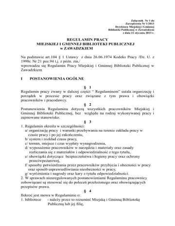 REGULAMIN PRACY MIEJSKIEJ I GMINNEJ BIBLIOTEKI