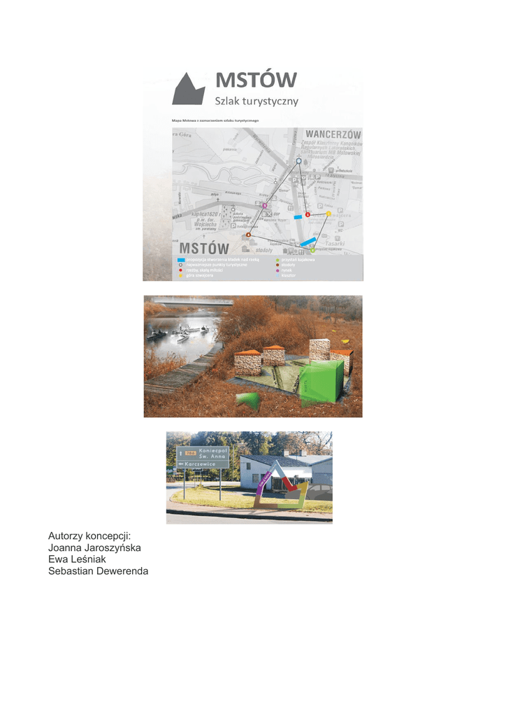 Autorzy koncepcji: Joanna Jaroszyńska Ewa Leśniak Sebastian Dewerenda EKO HOTELE Zespół starych stodół . Wprowadzenie Na północnym zboczu Góry Ścięgna, poza zabudowaniami mieszkalnymi zachowały się drewniane stodoły. W większości były to całkiem solidne budynki wznoszone z miejscowego kamienia wapiennego, który ma to do siebie, że z wiekiem bieleje. Budynki były najczęściej kryte słomianymi strzechami. Powstało ich około 80. Stawiano je wzdłuż kilku stodolnych ulic. Większość z nich to już ruiny. Pozostałości murów bieleją pośród bujnych traw na stoku wzniesienia. Wywołują skojarzenia z wiejskimi pejzażami z południa Europy. Autorom zależało na wydobyciu tego co jest najpiękniejsze i połączenie w subtelny sposób tradycji z nowoczesnością. Funkcjonowanie hotelu obejmuje cztery sfery: ekologiczną, społeczną, kulturową i gospodarczą. W sferze ekologicznej uprawia się żywność metodami ekologicznymi, używa się odnawialnych źródeł energii, buduje się ekologiczne domy, dba się o bioróżnorodność, jakość wody, powietrza i recyklingu odpadów. Aspekt społeczny – przyjaźń, dobra atmosfera w społeczności to podstawowe elementy „dobrego życia”. Ich tworzeniu się sprzyja właśnie wspólne działanie oraz fakt, że do budowania więzi społecznych bardziej korzystne jest mieszkanie w wioskach niż w miastach, gdzie ludzi jest zbyt wielu by tworzyli razem zgraną grupę. W sferze społecznej ekowioski starają się tworzyć społeczności, w których wszyscy mieszkańcy mają wpływ na podejmowane decyzje, wspierają się nawzajem, zapewniają edukację, dbają o zdrowie i stwarzają warunki do prowadzenia ekologicznego biznesu. Dlatego też optymalne warunki do szczęśliwego życia są tam, gdzie ludzie mogą stworzyć harmonijnie funkcjonującą społeczność, wspierać się nawzajem i żyć w zgodzie zarówno z samymi sobą jaki i z przyrodą.Jeżeli chodzi o sferę kulturową to przede wszystkim sprowadza się to do podtrzymywania histori i tradycji miejsca. Model ekonomiczny powinien być dopasowany do tego, jak funkcjonuje przyroda. Model, który najlepiej spełnia założenia zrównoważonego rozwoju to gospodarka naturalna czyli zaspokajanie wszystkich podstawowych materialnych potrzeb takich, jak żywność, ubrania, dom, narzędzia lub energia w obrębie lokalnej społeczności lub nawet pojedynczego gospodarstwa. Gospodarka naturalna może się oczywiście wiązać z handlem żywnością, a ściśle rzecz biorąc z nadwyżkami żywności. Dzięki temu rolnicy mają zapewnione bezpieczeństwo żywnościowe i są niezależni od zmian cen na rynkach lokalnych lub międzynarodowych, bądź też od nieuczciwości odbiorców. Dodatkowe źródło dochodu w gospodarce naturalnej może stanowić rzemiosło lub różnego rodzaju usługi. Gospodarka naturalna daje możliwość funkcjonowania gospodarki, której pozwala na współpracę, zamiast konkurencji. Nie ma tu bowiem potrzeby walki o klienta i konieczności zdobywania miejsca na rynku. Materiał. Podstawowym materiałem użytym w projekcie, zarówno w stosunku do obiektu historycznego jak i nowo powstałego jest kamień wydobywany w tym samym regionie. Ekologiczny dom wykonany jest z przyjaznych dla środowiska materiałów,w tym także wykorzystanych powtórnie jak na przykład cegły i kamienie ze starego domu. Dom taki jest energooszczędny, wyposażony w ekologiczne systemy sanitarne, system zagospodarowywania szarej wody i odnawialne źródło energii. Transport. W ekologicznych miastach podstawą transportu nie są samochody, lecz chodzenie na piechotę, jazda rowerem i czysty transport publiczny czy za pośrednictwem meleksów. Poruszanie się po mieście pieszo lub rowerem ułatwia zwięzła zabudowa i specjalnie przystosowane ulice. W przypadku miejsca na parkowanie aż 20 rowerów można ustawić w miejscu parkingowym jednego samochodu79. Cele. Promowanie zdrowego stylu życia stanowią obecnie priorytet w działaniach gminy. Baza noclegowa. W gminie jest około 5 punktów noclegowych. Brak bazy noclegowej. Przykład. Siedziba Konsorcjum Winiarskiego “Ribera del Duero” Roa, Hiszpania - połączenie architektury starej i nowej. Architekt: ESTUDIO BAROZZI VEIGA S.L.P. Projekt zajął I miejsce w międzynarodowym konkursie architektonicznym. Obiekt położony jest w miejscowości Roa, w regionie Burgos, na wzgórzu, z którego rozciąga się widok na winorodne dorzecze rzeki Duero. Roa to historyczna osada, której historie znaczą pożary i bitwy i która do dnia dzisiejszego zachowała pozostałości swoich średniowiecznych murów obronnych. Autorzy koncepcji: Sabina Sujecka Marcin Lubecki Ewelina Czajka Katarzyna Pyka Trzecia grupa podjęła się ożywienia mstowskiego rynku oraz zaadaptowania wewnętrznego podwórza Gminnego Ośrodka Kultury. Cele te mają zostać osiągnięte m.in. poprzez aktywizację społeczną mieszkańców Mstowa. Mieszkańcy gminy powinni wspólnie zaangażować się w zmianę przestrzeni publicznej GOKu poprzez wyposażanie jej w ich własne, zbędne już przedmioty (np. meble) czy odnowienie i pomalowanie ścian. Takie działania sprawią, że będą traktować tą przestrzeń bardziej jako swoją, a przez co częściej z niej korzystać. Autorzy proponują, aby wewnętrzne podwórko Gminnego Ośrodka Kultury zostało podzielone na trzy strefy: strefę zabawy, strefę rozrywki oraz strefę kultury. Jednym z pomysłów zagospodarowania podwórka jest stworzenie czytelni dla lokalnej biblioteki, której funkcja mogłaby w przyszłości zostać poszerzona o kawiarnię. Innymi pomysłami zagospodarowania podwórka jest organizacja letniego kina plenerowego czy aktywności ruchowych. W okresie wiosenno-letnim działania GOKu mogłyby również przenosić się na przestrzeń rynku, np. zajęcia dla dzieci z lokalnej świetlicy środowiskowej. Autorzy koncepcji: Dominika Wójcki Sara Sacała Damian Chomątowski W ten sposób 