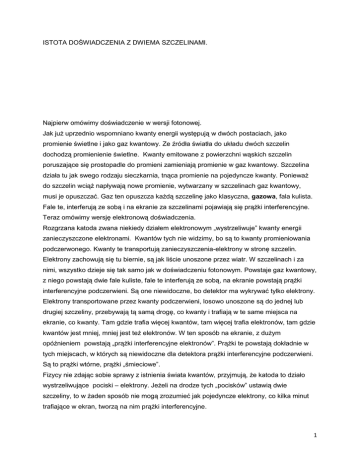 1 ISTOTA DOŚWIADCZENIA Z DWIEMA SZCZELINAMI