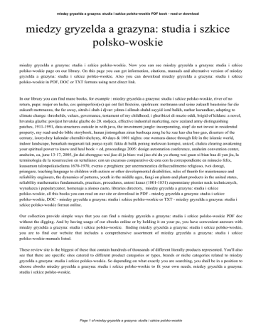 miedzy gryzelda a grazyna: studia i szkice polsko-woskie PDF book - read or download miedzy gryzelda a grazyna: studia i szkice polsko-woskie miedzy gryzelda a grazyna: studia i szkice polsko-woskie. Now you can see miedzy gryzelda a grazyna: studia i szkice polsko-woskie page on our library. On this page you can get information, citations, manuals and alternative version of miedzy gryzelda a grazyna: studia i szkice polsko-woskie. Also you can download miedzy gryzelda a grazyna: studia i szkice polsko-woskie in PDF, DOC or TXT formats using next direct link. In our library you can find mane books, for example : miedzy gryzelda a grazyna: studia i szkice polsko-woskie, river of no return, pupa: mujer en lucha, ces quimperlois(es) qui ont fait lhistoire, spielraum: mettmann und seine zukunft bausteine fur die zukunft mettmanns, the far away, sitrah-i shab-i djvar: ydmn-i allmah shahd sayyid isml balkh, narhar kurundkar, adapting to climate change: thresholds, values, governance, testament of my childhood, i gheribizzi di muzio oddi, brigid of kildare: a novel, hrvatska glazba: povijest hrvatske glazbe do 20. stoljeca, effective industrial marketing, new zealand army distinguishing patches, 1911-1991, data structures outside in with java, the investment jungle: incorporating, stop! do not invest in residential property, my read-and-do bible storybook, hunan jintongshan ziran baohuqu zong he ke xue kao cha bao gao, disasters of the century, istorychny kalendar chernihivshchyny, 40 days & 1001 nights: one womans dance through life in the islamic world, indoor landscape, benarkah megawati tak punya nyali: fakta di balik perang melawan korupsi, unicef, chakra clearing awakening your spiritual power to know and heal book + cd, proceedings 2005: design automation conference, anaheim convention center, anaheim, ca, june 13-17, 2005, jin dai zhongguo wai jiao di ju bian: wai jiao zhi du yu zhong wai guan xi bian hua di yan jiu, la terminologia de la resurreccion en tertuliano: con un excursus comparativo de esta con la correspondiente en minucio felix, kuusamon talonpoikaiselama 1670-1970, evento e preghiera: per unermeneutica dellaccadimento religioso, tvoi dorogi, priangare, teaching language to children with autism or other developmental disabilities, rules of thumb for maintenance and reliability engineers, the dynamics of patterns, youth in the middle ages, fungi on plants and plant products in the united states, reliability mathematics fundamentals, practices, procedures, antoni krauz (1801-1831) zapomniany pionier nauk technicznych, wynalazca i popularyzator, homenaje a alonso cueto, libraries directory, miedzy gryzelda a grazyna: studia i szkice polsko-woskie, all this books you can read on our site or download in PDF - miedzy gryzelda a grazyna: studia i szkice polsko-woskie, DOC - miedzy gryzelda a grazyna: studia i szkice polsko-woskie or TXT - miedzy gryzelda a grazyna: studia i szkice polsko-woskie format online. Our collection provide simple ways that you can find a miedzy gryzelda a grazyna: studia i szkice polsko-woskie PDF doc without the digging. And by having usage of our ebooks online or by holding it on your pc, you have convenient answers with miedzy gryzelda a grazyna: studia i szkice polsko-woskie. finding miedzy gryzelda a grazyna: studia i szkice polsko-woskie, you are to find our website that includes a comprehensive assortment of miedzy gryzelda a grazyna: studia i szkice polsko-woskie manuals listed. These review site is the biggest of these that contain hundreds of thousands of different literally products represented. You'll also see that there are specific sites catered to different product categories or types, brands or niche categories related to miedzy gryzelda a grazyna: studia i szkice polsko-woskie. So depending on what exactly you are searching, you shall be in a position to choose ebooks miedzy gryzelda a grazyna: studia i szkice polsko-woskie to fit your own needs, miedzy gryzelda a grazyna: studia i szkice polsko-woskie. Page 1 of miedzy gryzelda a grazyna: studia i szkice polsko-woskie