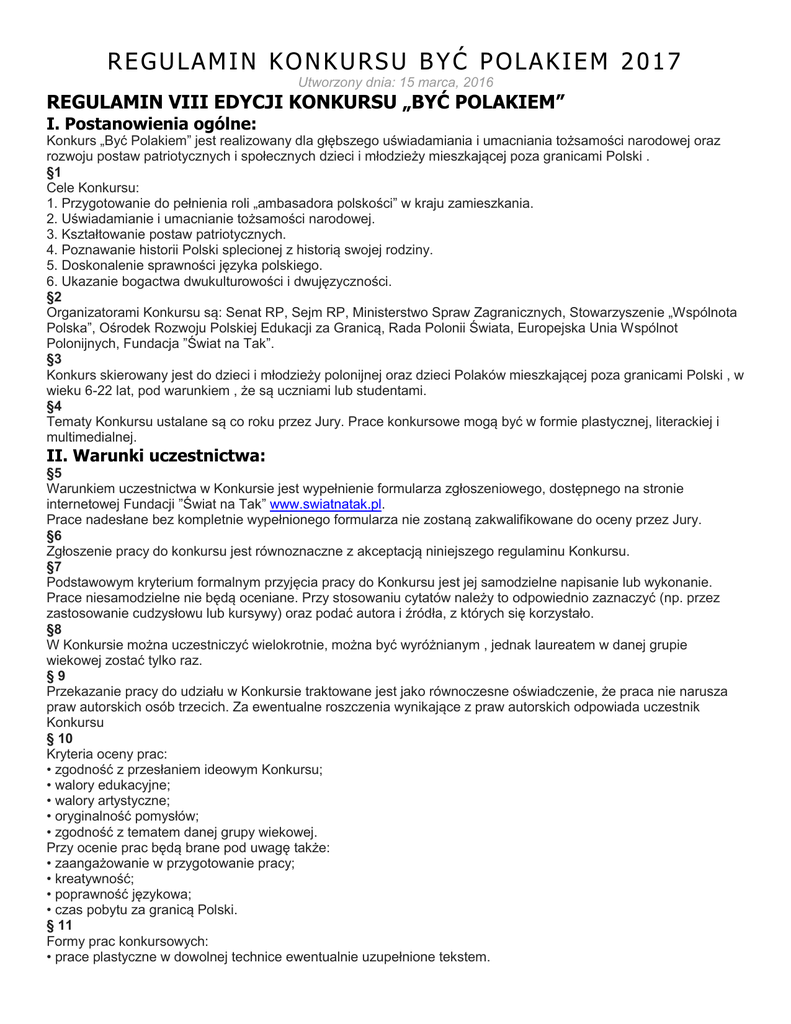 REGULAMIN KONKURSU BYĆ POLAKIEM 2017