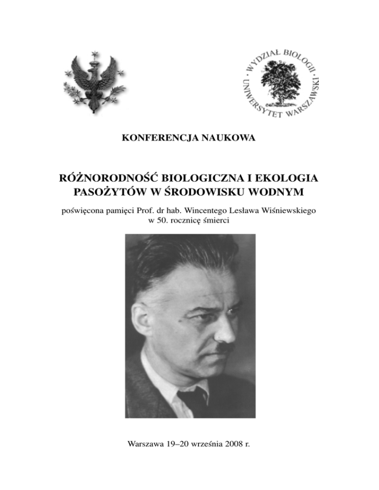 KONFERENCJA NAUKOWA RÓŻNORODNOŚĆ BIOLOGICZNA I EKOLOGIA PASOŻYTÓW W ŚRODOWISKU WODNYM poświęcona pamięci Prof. dr hab. Wincentego Lesława Wiśniewskiego w 50. rocznicę śmierci Warszawa 19–20 września 2008 r. Organizatorzy Dziekan Wydziału Biologii Uniwersytetu Warszawskiego Zakład Parazytologii Uniwersytetu Warszawskiego Zakład Parazytologii Uniwersytetu Wrocławskiego Komitet Parazytologii Polskiej Akademii Nauk Komitet organizacyjny Przewodniczący prof. dr hab. Edward Siński Wiceprzewodniczący dr hab. Maria Doligalska, prof. UW prof. dr hab. Anna Okulewicz prof. dr hab. Stanisław Kazubski prof. dr hab. Bożena Moskwa Członkowie honorowi prof. dr hab. Katarzyna Niewiadomska prof. dr hab. Teresa Sulgostowska prof. dr hab. Teresa Pojmańska Sekretarz dr Małgorzata Bednarska Miejsce obrad Wydział Biologii Uniwersytetu Warszawskiego ul. Miecznikowa 1 Program konferencji 263 PROGRAM KONFERENCJI Piątek – 19 września 2008 Otwarcie konferencji – 11.30–11.45 Przewodniczący Komitetu Organizacyjnego – prof. dr hab. Edward Siński Dziekan Wydziału Biologii – prof. dr hab. Joanna Pijanowska Sesja wspomnieniowa – 11.45–13.15 Przewodniczący: prof. dr hab. Anna Okulewicz, dr hab. Maria Doligalska, prof. UW 1. Czas wspomnień „Profesor Wincenty L. Wiśniewski – sylwetka i działalność naukowa” opracowanie: Katarzyna Niewiadomska, Teresa Sulgostowska Multimedialna prezentacja zdjęć archiwalnych Stanisław L. Kazubski Wspomnienia o Profesorze Lena Jarecka, Janina Kaczanowska, Ewa Styczyńska–Jurewiczowa, Stanisław Kazubski, Jerzy Rokicki, Tomasz Umiński 2. „Zespołowe badania prof. W. Wiśniewskiego nad krążeniem pasożytów w ekosystemie je− ziora Drużno jako model działań Sekcji Ichtioparazytologicznej Studenckiego Koła Nauko− wego Uniwersytetu Gdańskiego” Anna Zakrzewska, Ewa Makarska, Agnieszka Kijewska, Leszek Rolbiecki, Jerzy Rokicki Sesja I – 14.15–16.00 Przewodniczący: prof. dr hab. Bożena Moskwa, prof. dr hab. Jerzy Rokicki 1. „Rola żywicieli paratenicznych w cyklach rozwojowych helmintów” Anna Okulewicz 2. „Aparat sensoryczny przywr i jego znaczenie w zamknięciu cyklu rozwojowego w środo− wisku wodnym” Andrzej Czubaj, Katarzyna Niewiadomska, Julita Nowakowska 3. „Porównanie zarażenia przez robaki pasożytnicze antarktycznej ryby Notothenia coriiceps przed 29 laty i obecnie w okolicach Stacji im. Henryka Arctowskiego” Zdzisław Laskowski, Krzysztof Zdzitowiecki 4. „Parazytologiczne następstwa biologicznych inwazji na przykładzie kiełży i ryb z rodziny Mugillidae” Mykola Ovcharenko 264 Program konferencji Sesja II plakatowa – 16.00–16.30 Przewodniczący: prof. dr hab. Teresa Pojmańska 1. „Nowe dane na temat występowania i anatomii pijawek z rodzaju Italobdella Bielecki, 1993 (Hirudina: Piscicolidae)” Aleksander Bielecki, Katarzyna Palińska 2. „Przywry monogeniczne ryb z jezior zlewni rzeki Łyny” Marzena Kuształa, Ewa Dzika 3. „Specyficzność ekologiczna w zgrupowaniach helmintów gryzoni” Joanna Hildebrand, Grzegorz Zaleśny 4. „Przywry (Digenea) układu pokarmowego Gavia stellata (Pontoppidan, 1763) i Gavia arcti− ca (Linnaeus, 1758) na Pomorzu Zachodnim” Izabella Rząd, Katarzyna Kavetska, Katarzyna Szałańska 5. „Pierwsze stwierdzenie gatunku Microsomacanthus oidemiae Spassky et Jurpalova, 1964 (Cestoda: Hymenolepididae) u dzikich kaczek północno−zachodniej Polski” Katarzyna M. Kavetska, Katarzyna Królaczyk, Vadim V. Kornyushin, Elżbieta Kalisińska 6. „Helminty rybożernych ptaków szponiastych (rząd Falconiformes) pochodzących ze środ− kowej i północno−zachodniej Polski” Elżbieta Kalisińska, Izabella Rząd, Jiljí Sitko, Katarzyna M. Kavetska, Katarzyna Królaczyk, Hali− na Budis 7. Pierwsze stwierdzenie Retinometra pittalugai Lopez−Neyra, 1932 (Cestoda, Hymenolepididae) w Polsce Katarzyna Królaczyk, Katarzyna M. Kavetska, Vadim V. Kornyushin 8. „Badania parazytofauny wybranych gatunków Gastropoda zbiorników wodnych Warszawy i okolic Urwitałtu” – podsumowanie projektów realizowanych w ramach fakultetu Parazyto− logia Środowiskowa” Małgorzata Bednarska 9. „Czynniki warunkujące i wpływające na rozmieszczenie i rozprzestrzenienie różnych form Anisakis simplex w rejonie Bałtyku” Tytus Andrzej Kuczkowski Wyjazd na Cmentarz Wojskowy na Powązkach o godz. 16.40 — Złożenie kwiatów — Msza Św. w Kościele Świętego Jozefata ul. Powązkowska 90 o godz. 18.30 Program konferencji 265 Sobota – 20 września 2008 Sesja III – 9.00–10.15 Przewodniczący: prof. dr hab. Edward Siński, dr hab. Ewa Dzika, prof. UWM 1. „The evolution of parasite communities – the role of the ice ages” Philip D. Harris 2. „Wodnopochodna toksoplazmoza: zagrożenie dla ludzi i bioróżnorodności ssaków mor− skich” Anna C. Majewska Sesja IV – 10.45–12.30 Przewodniczący: prof. dr hab. Anna Majewska, dr Andrzej Czubaj 3. „Fauna Monogenea kręgowców Polski” Ewa Dzika 4. „Helmintofauna leszcza (Abramis brama) jeziora Gosławskiego na przestrzeni trzydziestu lat (1972–2002)” Witold Jeżewski 5. „Wpływ charakteru rzeki i jakości wody na bogactwo i różnorodność pasożytów płoci (Rutilus rutilus L.) środkowego biegu Odry” Marcin Popiołek, Tomasz Łuczyński, Hubert Jarnecki 6. „Różnorodność cech układu rozrodczego pijawek (Citellata: Hirudinida) w klasyfikacji fi− logenetycznej” Aleksander Bielecki, Jerzy Klag, Piotr Świątek 7. „Pijawki (Hirudinea: Piscicolidae) pasożyty ryb antarktycznych z rodziny Chaenichthyi− dae” Aleksander Bielecki, Jerzy Rokicki, Ewa Ropelewska 8. „Różnorodność biologiczna pijawek (Citellata: Hirudinida) w oparciu o cechy kariotypu” Joanna Cichocka, Aleksander Bielecki Sesja V 13.30–15.30 Przewodniczący: prof. dr hab. Krzysztof Zdzitowiecki, prof. dr hab. Edward Siński 9. „Echinostomatidae Looss, 1899 (Echinostomatoidea, Digenea) ptaków 