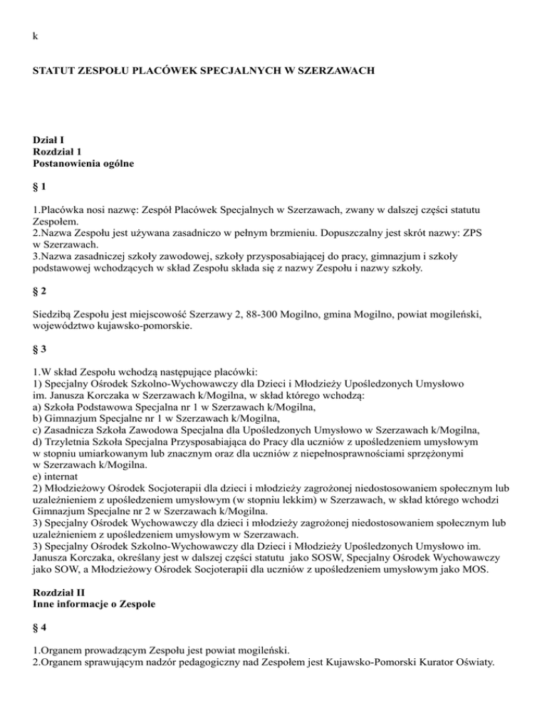 k STATUT ZESPOŁU PLACÓWEK SPECJALNYCH