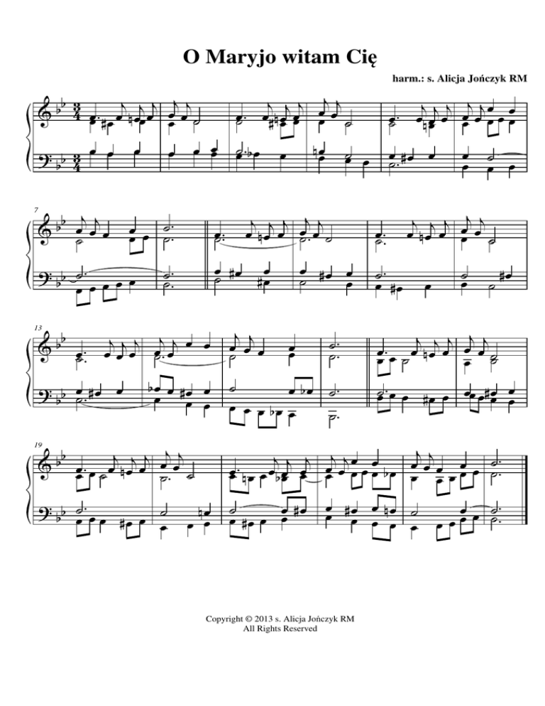 O Maryjo witam Cię b 3 j j jj & b 4 œœ . # œ œ n œœj œ œœ œ ˙ 7 ? b b 43 œ œ œ b jj b & œ˙ œ œ œœ œ ˙˙ . . œ ? b ˙. b œœœœœ œ œœ œ˙ .. b & b œ . œj œj œj œ˙j. œj œ œ ˙. 13 ? b œ˙ . # œ œ b bœ œ #œ œ œ œ œ b j j & b œœ . œ ˙ œ n œj œ 19 jj œœ ˙. ˙ ? bb . œ œ̇ œ # œ œ ˙œ j j j œj j œ˙ . œ # n œœ œœ œ œ ˙ œ̇ . b œ n œœ œ j j œ˙ œ œ œ #œ œ ˙ œ œœ j j j j jœ œ œ˙ . œ n œœ œ œœ œ œ œ œ ˙œ œ j j j œj j œ nœ œ ˙. œ ˙ œ #œ œ ˙ #œ ˙. ˙. harm.: s. Alicja Jończyk RM ˙. ˙. ˙ œ bœ ˙. œ œ œ bœ œ ˙. œ˙ # œ œ . œ˙ . . œ œ ˙ œ œ j j j œj œj œ nœ œ œ ˙ . œ̇ # œ œ ˙ œ ˙ #œ j j j œj j œœ . œ ˙ œ n œ œ œ œ ˙˙ œ̇ . œ œ # œ œ œœ œ # œœ œœ jj j j j j jœ œ . ˙ œ œ œ œ œ . œœ n œ œ œ b œœ œœ œ œ œ œ œ b œ œ œ œ œ œ ˙. nœ œ œ ˙ œ #œ œ #œ œ œ œ #œ œ nœ ˙ œ œ œ œ œ Copyright © 2013 s. Alicja Jończyk RM All Rights Reserved œœ œ ˙˙ . . œœ O Maryjo witam Cię harm.: s. Alicja Jończyk RM # 3 & 4 œ . œj# œj œj œj œj œ #œ œ œ ˙ 7 ? # 43 œ œ œ # jj & œ œœ ˙ œ œ ˙. œ ˙. ? # ˙. œ œœ œ œ 13 & # & # œ œœ œ˙ .. œ̇ . n œ # œœ œ ˙œ œ j j j jj œ # œ œ œ˙ . œ ˙ œ #œ œ ˙ #œ ˙˙ . . j j j œj j œ œ . œ˙ œ # œœ œ œ œ œ œ œ œ #œ œ ˙ œ œ #œ œ ˙. œ˙ . . œ œ ˙ œ œ j j j œj j œ #œ œ œ œ ˙ . œ̇ # œ œ ˙œ ˙ #œ j j j œj j œ œ . œ˙ . œ œ œ ˙ . œ j j œ˙ œ œ j j j œj œj œœ . œ ˙ œ # œ œ ˙ ˙ . jj j j j j jœ œ . œ œœ . # œ œ œ n œœ œœ œœ œ œ œ œ b œ œ œ œœ œ œœ œ ˙˙ . ? # œ #œ œ ˙. 19 œ j j j œj j œ˙ . œ# # œœ œœ œ œ ˙ nœ œ #œ œ œ œ œ ?# . œ̇ œ œ # œ œ ˙œ #œ œ œ œœ ˙. ˙. ˙ œ bœ ˙. œ œ œ bœ œ ˙. ˙ œ #œ œ œ #œ œ j j j j j œ. œ œ #œ œ œ œ ˙ œ ˙ œ ˙ œ̇ . œ œ # œ œ œœ œ # œœ œœ œœ # œ œ n œ ˙ œ œ œ œ Copyright © 2013 s. Alicja Jończyk RM All Rights Reserved œ œ ˙. œ œ œ ˙. O Maryjo witam Cię harm.: s. Alicja Jończyk RM bb j & b b œœ . œj n œœj œj œ œj ˙ nœ œ ? bb b œ œ b 7 œ b j & b b b œ œj œ ˙ œ œœ œ œœ œ ˙˙ . . ? b b ˙. bb œ œ œ œ œ bœ œ nœ œ œ œ œ bb & b b œ . œ œj n œj œj œ ˙ jj œœ ˙. ˙ ? bb b . b œ̇ œ œ # œ œ ˙ œ n œœ œ ˙œ œ j j j jj œ n œ œ œ˙ . œ ˙ œ˙ # œ œ nœ ˙. ˙. b & b b b œ . œj j œj œj œj œ œ œ ˙. ˙. 19 œ̇ . b œ œ˙ .. 13 ? b b œ nœ œ b b ˙. j j j œj œj œ˙ . œ n n œœ œœ œ ˙ j œ œj œ ˙ œ nœ œ ˙ œ œœ ˙. ˙. ˙ œ bœ ˙. œ œ œ bœ œ ˙. œ˙ . j j j j jœ œ œ n œœ œ œœ œ œ œ œ œ˙ n œ œ . œ˙ .. œ œ ˙ œ œ j j j œj œj œ nœ œ œ ˙ . œ̇ # œ œ ˙ œ ˙ nœ j j j jj . œœ œ ˙ œ n œ œ œ œ ˙˙ œ œ̇ . œ œ n œ œ œœ œ n œœ œœ jj j j j œj j œ œ ˙ œ œœ . n œ œ œ b œœ œœ œ œ œ œ œ b œ œ œ œœ œ œœ œ ˙ .. nœ œ œ ˙ œ nœ œ #œ œ œ œœ n œ œ b œ ˙ œ œ œ œ Copyright © 2013 s. Alicja Jończyk RM All Rights Reserved œœ œ ˙˙ . . œœ