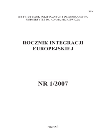 ISSN INSTYTUT NAUK POLITYCZNYCH I DZIENNIKARSTWA UNIWERSYTET IM. ADAMA MICKIEWICZA ROCZNIK INTEGRACJI EUROPEJSKIEJ NR 1/2007 POZNAÑ RADA REDAKCYJNA Przewodnicz¹cy: Kazimierz Robakowski Cz³onkowie: W³adys³aw Bartoszewski, Erhard Cziomer, Jochen Franzke, Raimund Krämer, Jadwiga Kiwerska, Roman KuŸniar, Andrzej Mania, Stefan Meller , Zdzis³aw Najder, Andrzej Sakson, Tadeusz Wallas, Anna Wolff-Powêska, Zdzis³aw Puœlecki, Konstanty A. Wojtaszczyk KOLEGIUM REDAKCYJNE Redaktor naczelny: Bogdan Koszel Cz³onkowie: Adam Barabasz, Zbigniew Czachór, Rados³aw Fiedler, Sebastian Wojciechowski Sekretarz redakcji: Beata Przybylska Adres redakcji: Instytut Nauk Politycznych i Dziennikarstwa Uniwersytetu im Adama Mickiewicza, ul. Umultowska 89a, 61-614 Poznañ, tel./fax (0-61) 829 21 06; 829 22 08 www.http// inpid.amu.edu.pl Redakcja nie zwraca materia³ów niezamówionych oraz zastrzega sobie prawo skracania i adiustacji tekstów Wydawca: Instytut Nauk Politycznych i Dziennikarstwa Uniwersytetu im. Adama Mickiewicza, ul. Umultowska 89a, 61-614 Poznañ, [email protected] Sk³ad komputerowy – „MRS” 60-408 Poznañ, ul. P. Zo³otowa 23, tel. 061 843 09 39 Druk i oprawa – Zak³ad Graficzny UAM – 61-712 Poznañ, ul. H. Wieniawskiego 1 Nr 1 ROCZNIK INTEGRACJI EUROPEJSKIEJ 2007 Spis treœci ROZPRAWY I ARTYKU£Y ANDRZEJ PODRAZA Konferencja miêdzyrz¹dowa jako metoda reformowania Unii Europejskiej . . ZBIGNIEW CZACHÓR Suwerennoœæ, wspó³zale¿noœci i legitymizacja systemu integracyjnego Unii Europejskiej. . . . . . . . . . . . . . . . . . . . . . . . . . . . . . . . . . . . BOGDAN KOSZEL Traktat reformuj¹cy w stosunkach polsko-niemieckich . . . . . . . . . . . . . PIOTR MICKIEWICZ Europejska Polityka Bezpieczeñstwa i Obrony ery „globalnego nie-pokoju”. Koncepcje i praktyczna implementacja na pocz¹tku XXI wieku . . . . . . . . . . . £UKASZ BARTKOWIAK Relacje Unii Europejskiej z pañstwami Afryki, Karaibów i Pacyfiku . . . . . . ANNA POTYRA£A Wymiar sprawiedliwoœci i sprawy wewnêtrzne Unii Europejskiej – od Traktatu z Maastricht do Traktatu Lizboñskiego. . . . . . . . . . . . . . . . . . . . . . PIOTR TRZPIS Wspólna Polityka Rybacka Unii Europejskiej . . . . . . . . . . . . . . . . . . ADAM BARABASZ Polska Ludowa wobec europejskich inicjatyw integracyjnych w latach 1946–1957 . . . . . . . . . . . . . . . . . . . . . . . . . . . . . . . . 7 . 35 . 47 . 75 . 95 . 125 . 137 . 163 MATERIA£Y – PRZEGL¥DY – KOMENTARZE RYSZARDA FORMUSZEWICZ Miêdzy s³owami – polska i niemiecka wizja integracji europejskiej w deklaracji berliñskiej. . . . . . . . . . . . . . . . . . . . . . . . . . . . . . . . . . . . . . DONAT JERZY MIERZEJEWSKI Przemiany myœlenia o bezpieczeñstwie europejskim . . . . . . . . . . . . . . . WOJCIECH STANKIEWICZ Bud¿et Unii Europejskiej – kierunki ewolucji systemu finansowania w aspekcie nowej perspektywy finansowej 2007–2013 . . . . . . . . . . . . . . . . . . . . TOMASZ R. SZYMCZYÑSKI Dylematy wokó³ instytucji referendum europejskiego . . . . . . . . . . . . . . . TOMASZ BRAÑKA Status terytorium zamorskiego Wspólnot Europejskich na przyk³adzie Grenlandii . . 187 201 219 237 251 4 Spis treœci RIE 1’07 TOMASZ HOFFMANN Ocena przygotowania Wielkopolski do wdra¿ania i zarz¹dzania Wielkopolskim Programem Operacyjnym Rozwoju Regionalnego. . . . . . . . . . . . . . . . . 267 DOKUMENTY UNIJNE Dok. 1. Konkluzje prezydencji z posiedzenia Rady Europejskiej w Brukseli (8–9 marca 2007 r.) . . . . . . . . . . . . . . . . . . . . . . . . . . Dok. 2. Konkluzji prezydencji z posiedzenia Rady Europejskiej w Brukseli (21–22 czerwca 2007 r.) . . . . . . . . . . . . . . . . . . . . . . . Dok. 3. Mandat Konferencji Miêdzyrz¹dowej . . . . . . . . . . . . . . . . Dok. 4. Prezydencja portugalska Rady Silniejsza Unia Dla Lepszego Œwiata lipiec–grudzieñ 2007 r. . . . . . . . . . . . . . . . . . . . . . . . . Dok. 5. Konkluzje prezydencji z posiedzenia Rady Europejskiej w Brukseli (14 grudnia 2007 r.) . . . . . . . . . . . . . . . . . . . . . . . . . . . . . . . 287 . . . . . . . . . . . . 304 313 . . . . . . 331 . . . . . . 338 OCENY I OMÓWIENIA Andrzej Podraza (red.), Polityka Unii Europejskiej wobec Ukrainy: partnerstwo czy cz³onkostwo? (Joanna CIESIELSKA) . . . . . . . . . . . . . . . . . . . . . . Guy Verhofstadt, Stany Zjednoczone Europy (Miko³aj J. TOMASZYK) . . . . . . . . Zbigniew Czachór (red.), Unia Europejska po Traktacie ustanawiaj¹cym Konstytucjê dla Europy (Adam JASKULSKI) . . . . . . . . . . . . . . . . . . . . . . . . Irma S³omczyñska, Europejska Polityka Bezpieczeñstwa i Obrony. Uwarunkowania, struktury, funkcjonowanie (Adam JASKULSKI) . . . . . . . . . . . . . . . . Zbigniew Czachór (red.), 50 lat i co dalej? Europa i Unia Europejska miêdzy integracj¹ a atomizacj¹… (B³a¿ej GRYGO). . . . . . . . . . . . . . . . . . . . . . . . . . . 353 355 . 358 . 361 . 363 No. 1 THE YEARBOOK OF EUROPEAN INTEGRATION 2007 Table of Content ESSAYS AND PAPERS ANDRZEJ PODRAZA Inter-Governmental Conference as a Method to Reform the European Union . . 7 ZBIGNIEW CZACHÓR Sovereignty, Mutual Interdependence and Legitimization of the EU System of Integration . . . . . . . . . . . . . . . . . . . . . . . . . . . . . . . . . . . . 35 BOGDAN KOSZEL The EU Reform Treaty in Polish-German Relations . . . . . . . . . . . . . . . 47 PIOTR MICKIEWICZ The European Security and Defense Policy (ESDP) in the Period of ‘Global Non-peace’. The Concepts and Practical Implementation in the Early 21st Century . . . . . . . . . . . . . . . . . . . . . . . . . . . . . . . . . . . . 75 £UKASZ BARTKOWIAK EU Relations with African, Caribbean and Pacific States . . . . . . . . . . . . . 95 ANNA POTYRA£A EU Justice and Internal Affairs – from Maastricht Treaty to Lisbon Treaty . . . 125 PIOTR TRZPIS The EU Common Fisheries Policy . . . . . . . . . . . . . . . . . . . . . . . . . 137 ADAM BARABASZ Polish People’s Republic and European Integration Initiative