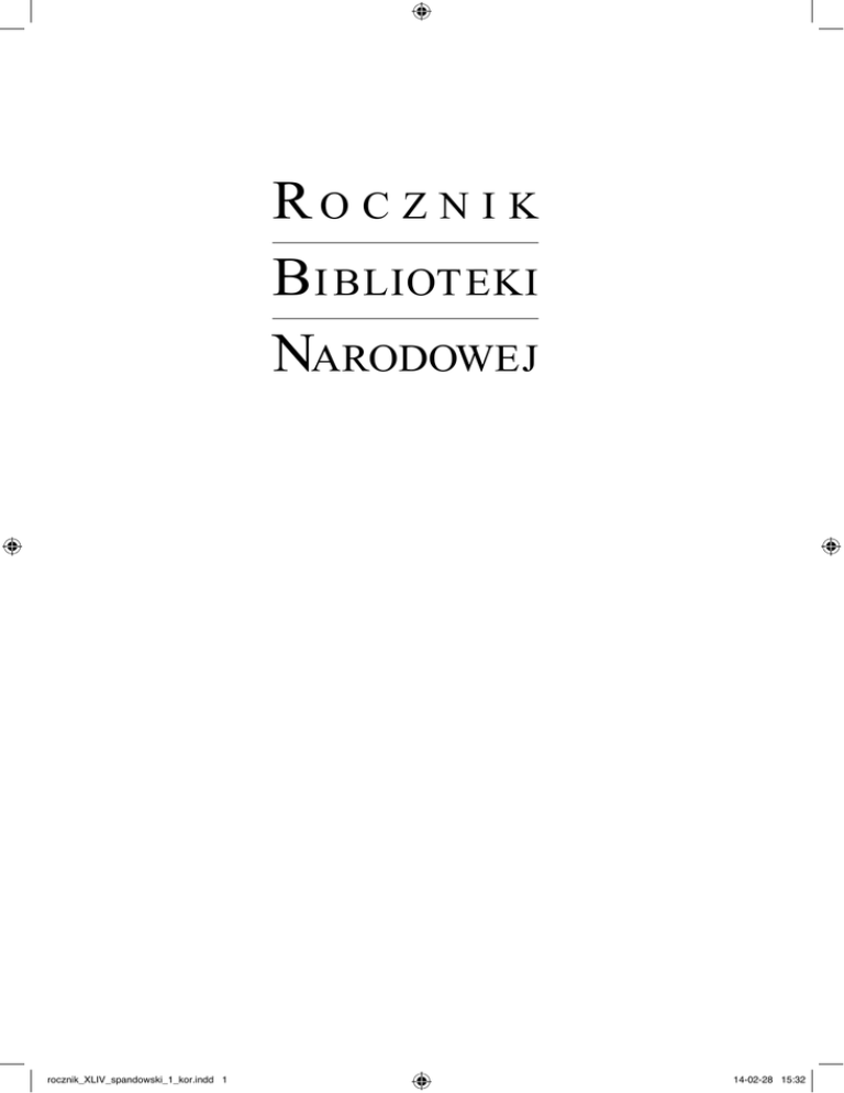 RO C Z N I K B I BLIOTEKI NARODOWEJ rocznik_XLIV_spandowski_1_kor.indd 1 14-02-28 15:32 THE NATIONAL LI B RA RY YE A R B O O K XLIV National Library Warszawa 2013 rocznik_XLIV_spandowski_1_kor.indd 2 14-02-28 15:32 RO C Z N IK B I BLI OT E KI NARODOWEJ XLIV Biblioteka Narodowa Warszawa 2013 rocznik_XLIV_spandowski_1_kor.indd 3 14-02-28 15:32 Rada naukowa Paulina Buchwald-Pelcowa, Roman Chymkowski, Tomasz Makowski, Monika Mitera, Sigitas Narbutas, Grzegorz Płoszajski Redaktor naczelny Tomasz Makowski Projekt okładki Wiktor Jędrzec Opracowanie typograficzne Andrzej Tomaszewski Redakcja tomu Łukasz Kozak Jacek Krawczyk Redaktor techniczny Andrzej Dybowski Tłumaczenie z języka rosyjskiego Krystyna Kuśpit Tłumaczenie streszczeń na język angielski John Cornell Adres redakcji Biblioteka Narodowa Sekretariat Naukowy al. Niepodległości 213, 02-086 Warszawa www.bn.org.pl ISSN 0083-7261 Biblioteka Narodowa. Warszawa 2013 Nakład 300 egz. Druk: Zakład Poligraficzny Moś i Łuczak sp.j. ul. Piwna 1, 61-065 Poznań rocznik_XLIV_spandowski_1_kor.indd 4 14-02-28 15:32 Krzysztof Kossarzecki, Sławomir Szyller Rękopisy Biblioteki Załuskich w Sankt Petersburgu * Każdy kto zajmuje się dziejami dawnych polskich zbiorów bibliotecznych czy archiwalnych zdaje sobie sprawę jak wielką rolę w jego badaniach odgrywa Petersburg. Od czasów Piotra I miasto to pełniło rolę stolicy Cesarstwa Rosyjskiego. Epoka oświecenia zachęcała kolejnych władców Rosji do podejmowania wysiłków w celu upodobnienia nowej stolicy do metropolii zachodnich. Szczególną wartość miały różne działania na polu kultury i nauki, w tym gromadzenie księgozbiorów. W epoce licznych wojen wypróbowanym sposobem zdobywania ksiąg, a nawet całych księgozbiorów, były rabunki dokonywane na terytorium nieprzyjaciela. Doświadczyła tego w XVIII w. chyląca się ku upadkowi Rzeczpospolita – nad Newę trafiły wówczas liczne archiwa i biblioteki z jej terenów. Jednym z najjaskrawszych przykładów takiego działania na jej ziemiach może być dwukrotne splądrowanie przez wojska carskie radziwiłłowskiej rezydencji w Nieświeżu. Wywieziona została wtedy stamtąd do Petersburga stara biblioteka, której księgi wydatnie zasiliły rozrastające się w tym czasie księgozbiory rosyjskie 1. * Badania nad księgozbiorem Biblioteki Załuskich finansowane są ze środków Ministra Kultury i Dziedzictwa Narodowego w ramach programu „Dziedzictwo kulturowe – Ochrona dziedzictwa kulturowego za granicą”. Tekst poniższy jest zmienioną i uzupełnioną wersją artykułu, który ukazać się ma jako: K. Kossarzecki, S. Szyller, Polskie zbiory rękopiśmienne w Sankt Petersburgu. Z prac nad zbiorami dawnej Biblioteki Załuskich, w: Stan badań nad wielokulturowym dziedzictwem dawnej Rzeczypospolitej, red. W. Walczak, K. Łopatecki, t. 5, Białystok 2013 [w druku]. 1 Pierwszego największego rabunku biblioteka w Nieświeżu doświadczyła w 1772 r. Rosjanie zabrali stamtąd 20 tys. tomów ksiąg z częścią rękopisów archiwalnych, w tym poszyty korespondencji. Z Petersburga znaczna część tych zbiorów została rozproszona po różnych bibliotekach i instytucjach w różnych miastach Rosji. Poważna liczba z tych, które pozostały nad Newą spłonęła w pożarze Biblioteki Akademii Nauk w 1988 r. W 1792 Nieśwież przeżył kolejny rabunek wojsk rosyjskich, jednak najcięższy był ten na przełomie 1812 i 1813, kiedy to wiele zbiorów radziwiłłowskich zostało zrabowanych, a reszta rozrzucona i zniszczona, zob. R. Jankowski, Burzliwe losy Archiwum Radziwiłłów rocznik_XLIV_kosa_9_kor.indd 243 14-02-28 14:48 244 Studia i materiały Bezsprzecznie największym łupem jaki w XVIII w. trafił z Polski do stolicy Rosji była wywieziona po III rozbiorze na polecenie carycy Katarzyny II, Biblioteka Załuskich. To przede wszystkim na jej bazie została niedługo potem ufundowana w Petersburgu Cesarska Biblioteka Publiczna. Obecnie, gdy mamy na uwadze ogrom zbiorów Rosyjskiej Biblioteki Narodowej w Petersburgu, może wydawać się czymś zaskakującym, że zbiory przywiezione z upadłego państwa, mogły stać się podwaliną pod powstanie i rozwój jednej z największych i najbogatszych bibliotek świata. Trzeba jednak zdać sobie sprawę z paru historycznych faktów. Prawdą jest, że wiek XVIII, a szczególnie jego połowa, były okresem najgłębszego upadku i politycznej słabości jednego z największych obszarowo państw Europy, jakim była Rzeczpospolita Polsko-Litewska. Z drugiej strony, na fali żywych – także i na ziemiach polskich – prądów oświeceniowych, pojawiały się coraz częstsze i coraz bardziej widoczne oznaki odrodzenia. Były one szczególnie widoczne na polu kultury, rozwoju mecenatu naukowego, oświatowego czy artystycznego. Przykładem może tu być działalność dwóch biskupów, braci Andrzeja Stanisława (1695-1758) i Józefa Andrzeja Załuskich (1702-1774). Po swoich zmarłych krewnych odziedziczyli oni bogate księgozbiory, do nich zaś dodali swoje niecodzienne zamiłowanie do ksiąg, przejawiające się także w ich gorliwym gromadzeniu. Sam biskup kijowski, Józef Andrzej Załuski, bez ogródek przyznawał się do tego, mówiąc: Jedni do koni, inni do ptaków, inni do zwierząt pałają namiętnością, mnie atoli od chłopięctwa ogromna opanowała żądza posiadania książek 2. I faktycznie, pod wpływem starszego brata, Józef Andrzej już od młodzieńczych lat gromadził swój księgozbiór. W miarę upływu czasu coraz wyraźniej stawało się to prawdziwą jego pasją, a wielce pomocnym w jej realizacji było gruntowne wykształcenie Załuskiego, liczne znajomości i kontakty nawiązane podczas podróży po krajach zachodniej Europy oraz fakt posiadania ugruntowanej pozycji politycznej i w hierarchii kościelnej. Nie do przecenienia był również atut dysponowania znacznymi zasobami finansowymi. Jeszcze przed 1732 r. Józef Andrzej doprowadził do połączenia