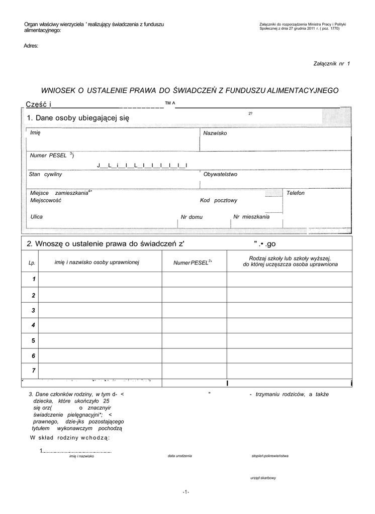 WNIOSEK O USTALENIE PRAWA DO ŚWIADCZEŃ Z FUNDUSZU ALIMENTACYJNEGO