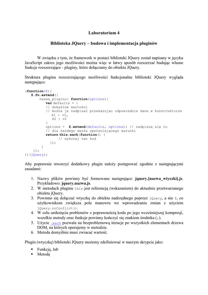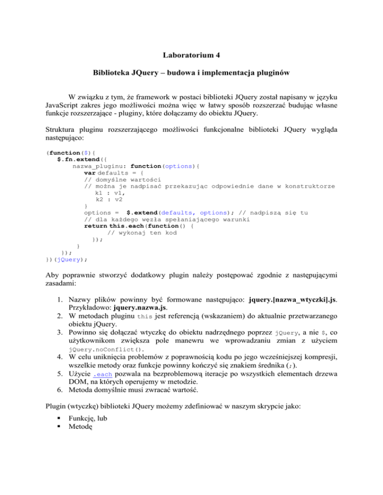 Laboratorium 4 Biblioteka JQuery – budowa i implementacja pluginów