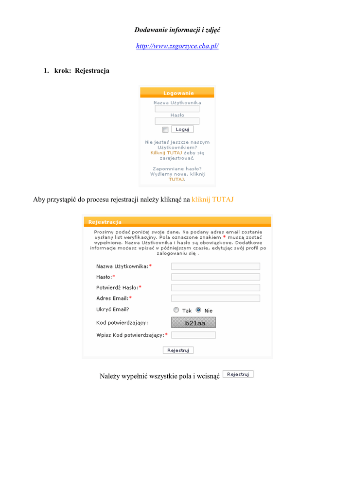 Dodawanie informacji i zdjęć http://www.zsgorzyce.cba.pl/ 1. krok