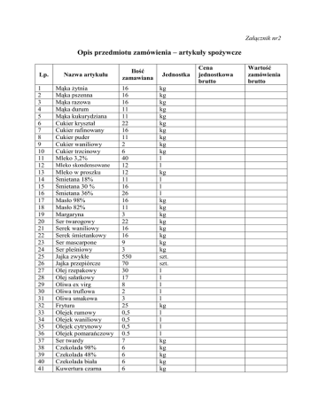 Opis przedmiotu zamówienia – artykuły spożywcze