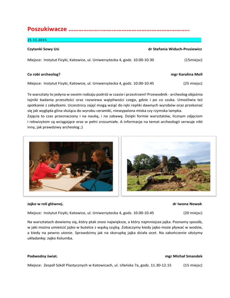 Poszukiwaczy - Uniwersytet Śląski Dzieci