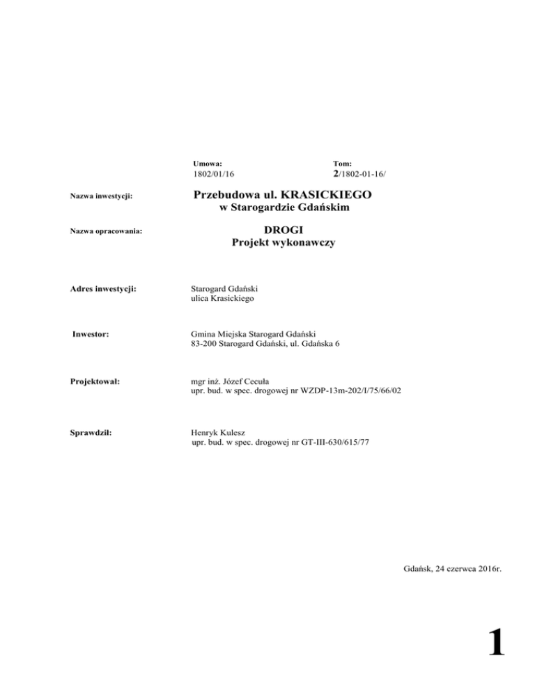 Przebudowa ul. KRASICKIEGO - Gmina Miejska Starogard Gdański