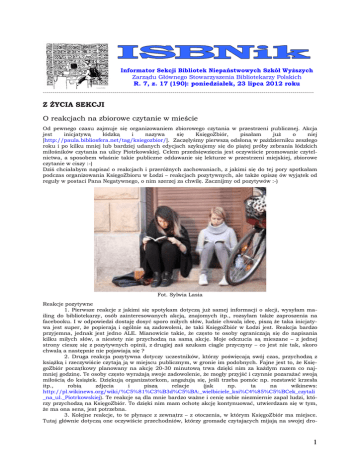 1 Z ŻYCIA SEKCJI O reakcjach na zbiorowe czytanie w mieście